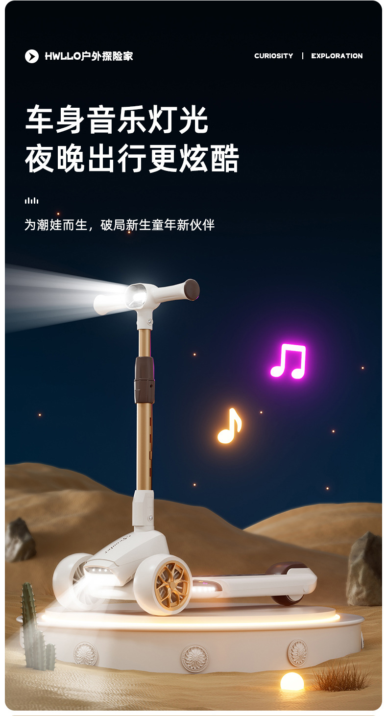 Factory wholesale children's scooters 1-3-8 years old for boys and girls, big kids with music and lights, one-button folding children's scooters
