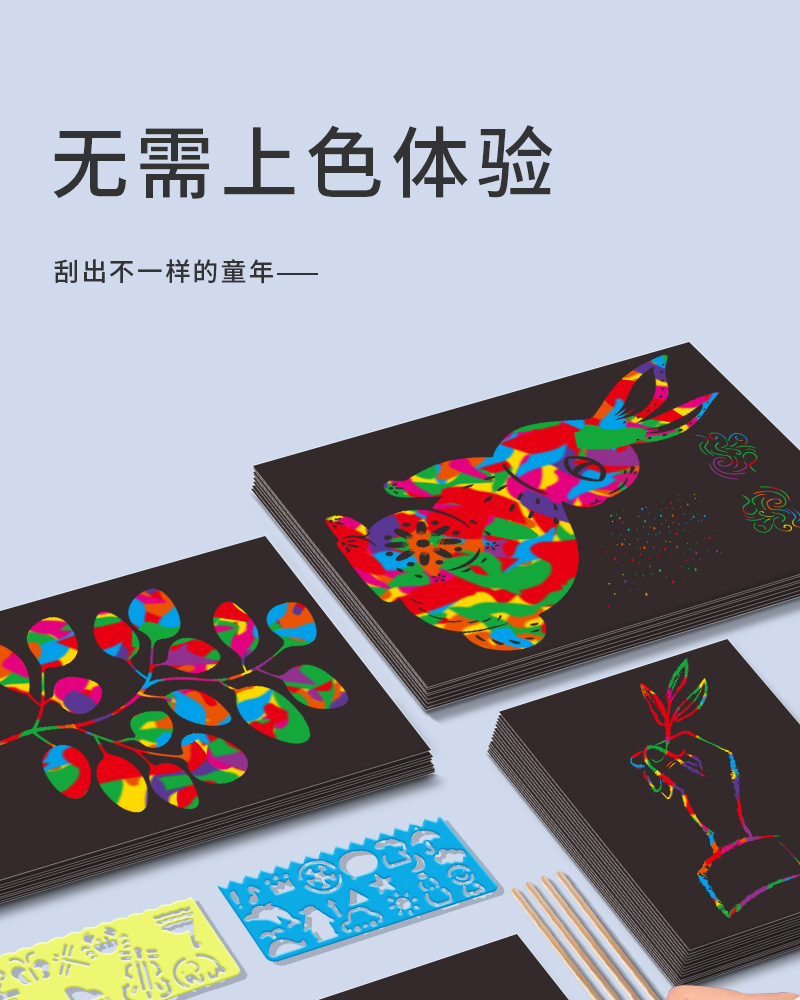 Factory wholesale of children's colorful scratch paintings, colorful scratch paper, and colorful creative painting art for kindergartens