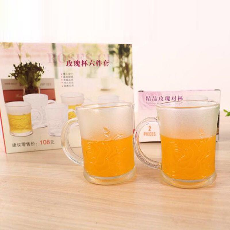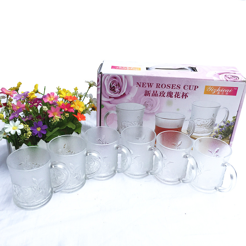 Factory wholesale of six-piece wedding gift sets with rose relief glass water cups and rose cups