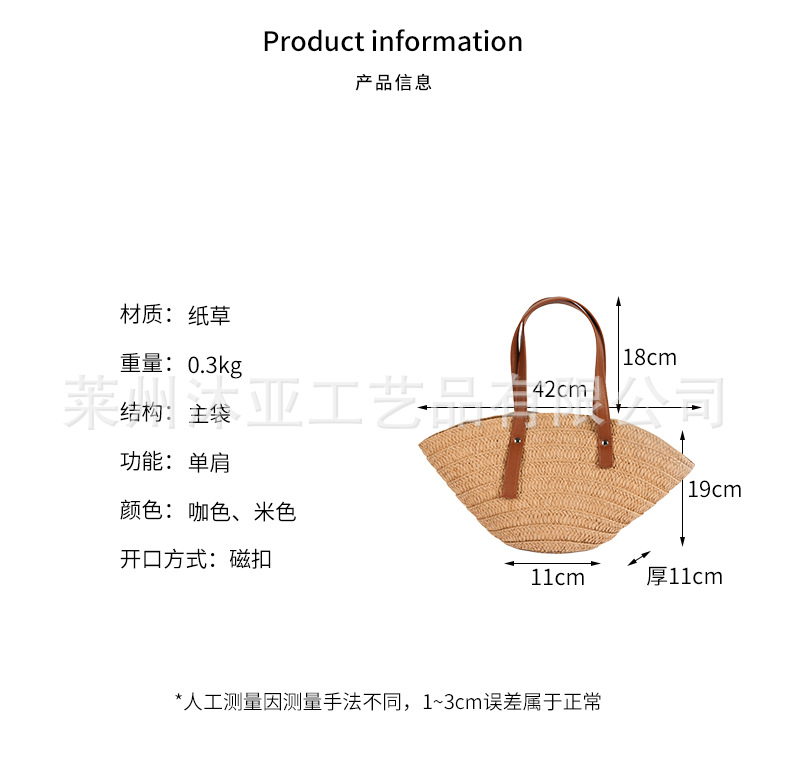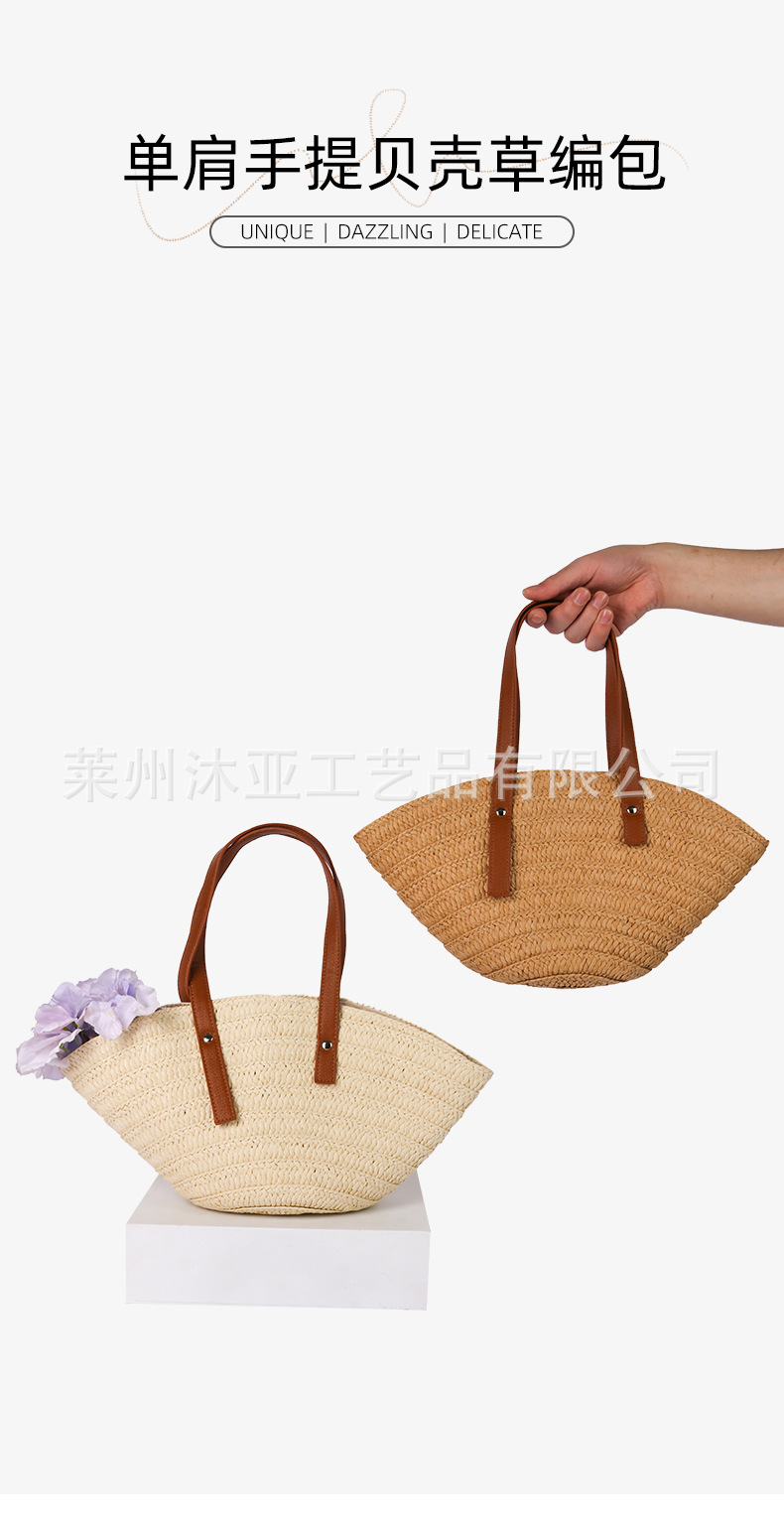Fan-shaped single-shoulder straw woven bag, new cute shell hand-held straw woven bag, vacation style beach bag, versatile women's bag