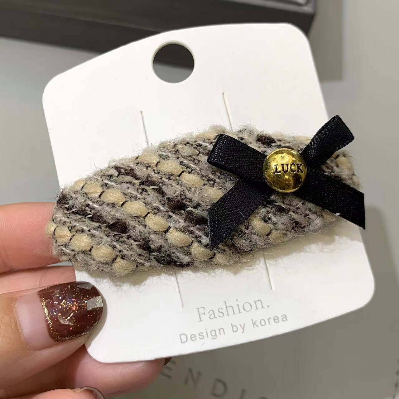 【 Fanzhi 】 New retro chanel-style woolen bow hair clips, bangs, BB clips and hair accessory clips from South Korea