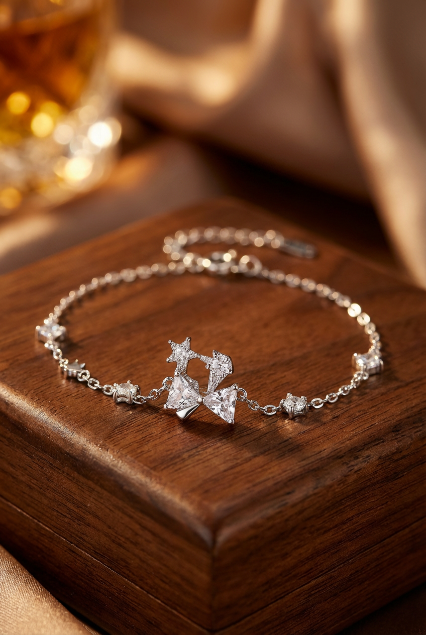Fashion Precision S925 plain silver engraved Starry River Flowing Light · Bow main diamond embellished with star wish trajectory adjustable light luxury bracelet and jewelry