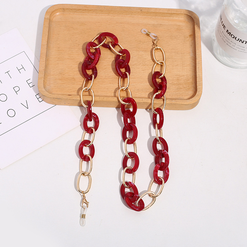 Fashionable acrylic eyeglass chain, UV gold electroplated neck chain, multiple colors to choose from, hot-selling spliced necklace, anti-slip mask chain