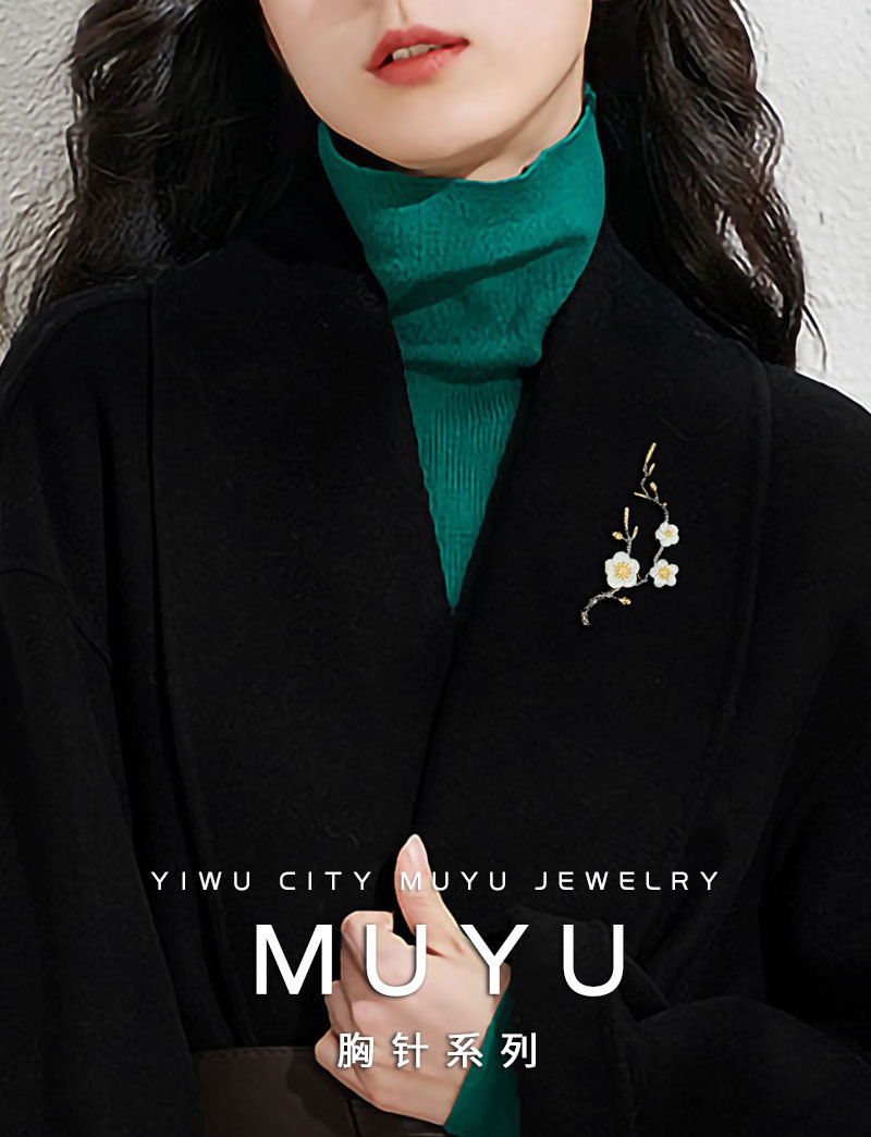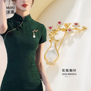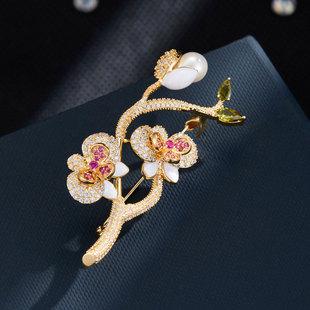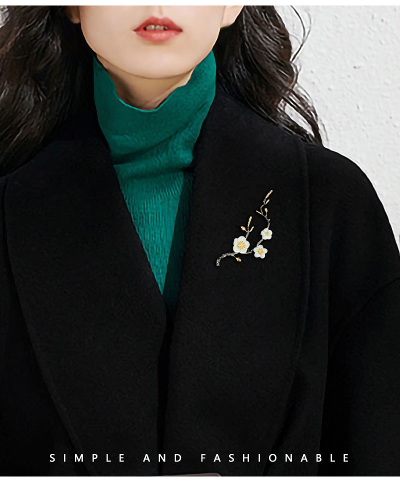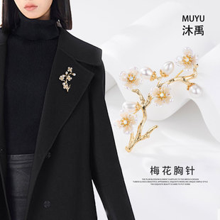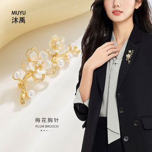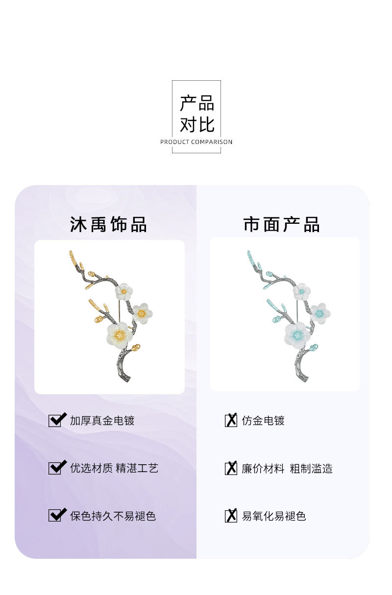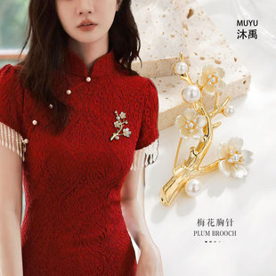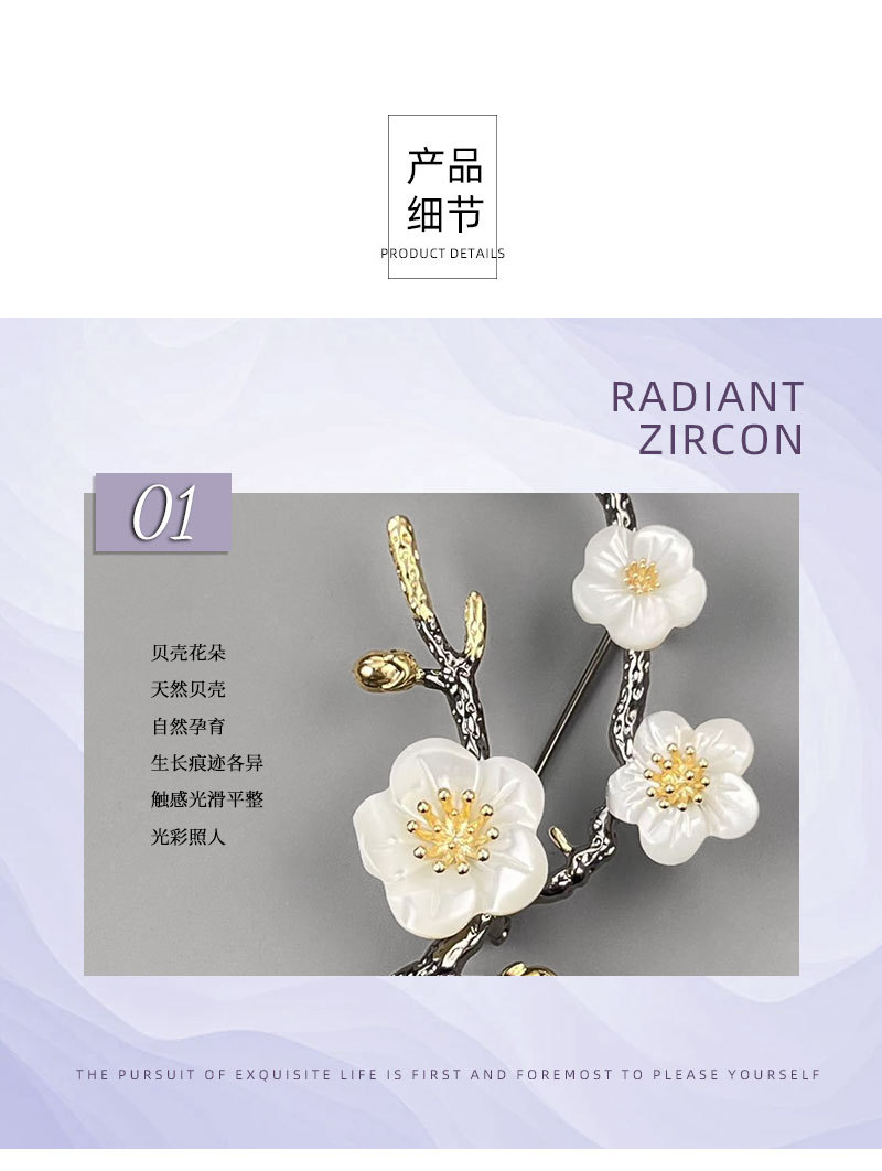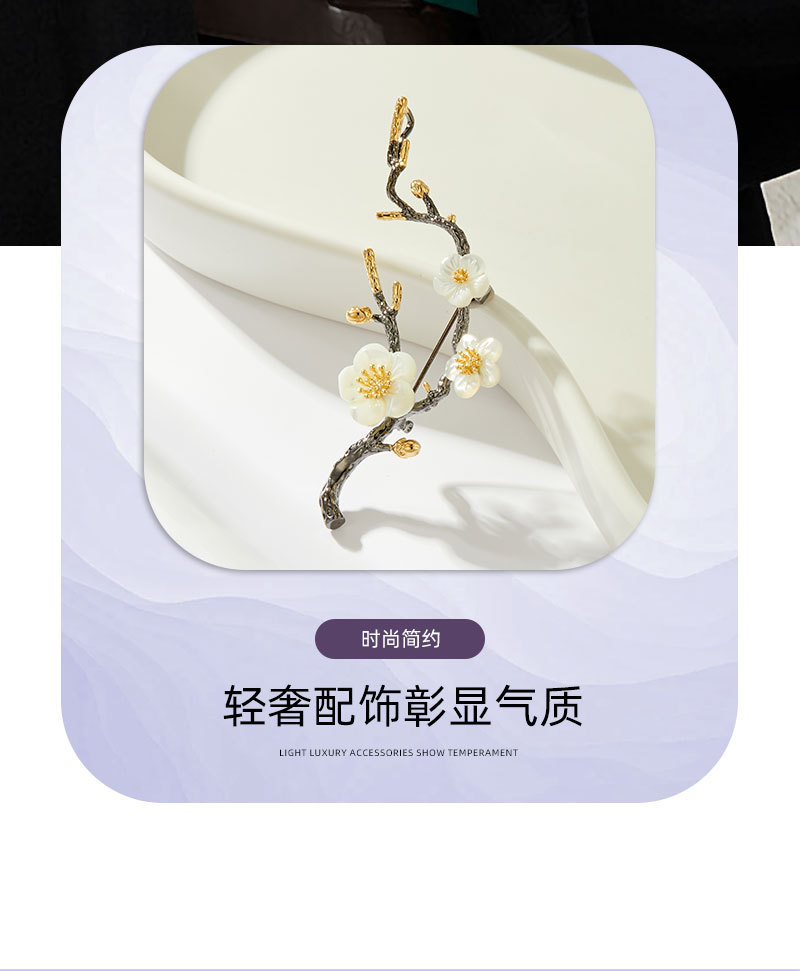 Fashionable and light luxury two-color golden plum flower brooch, light luxury and high-end shell flower brooch, new retro and elegant women's brooch