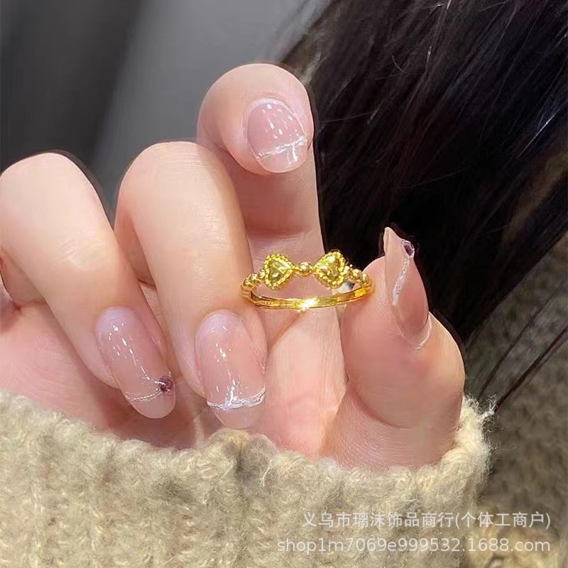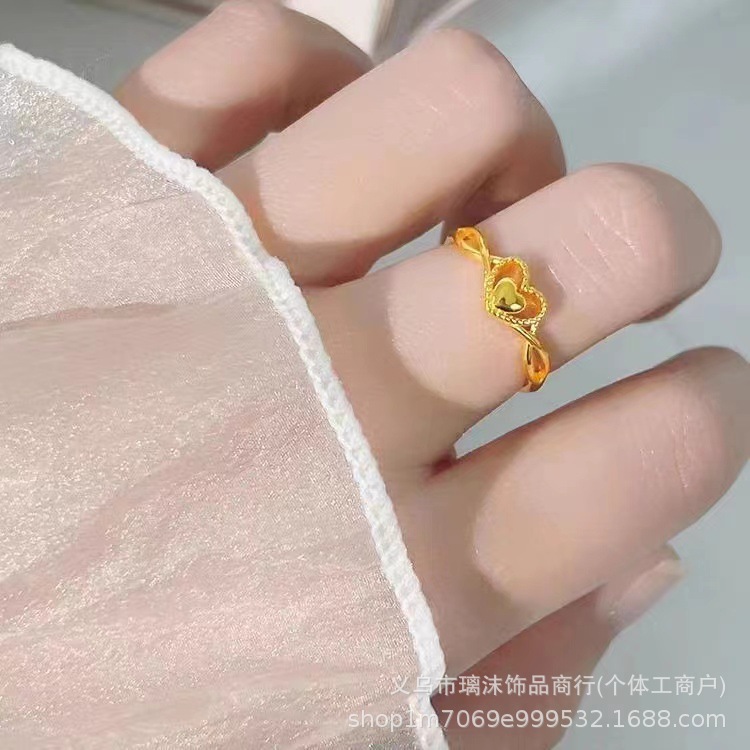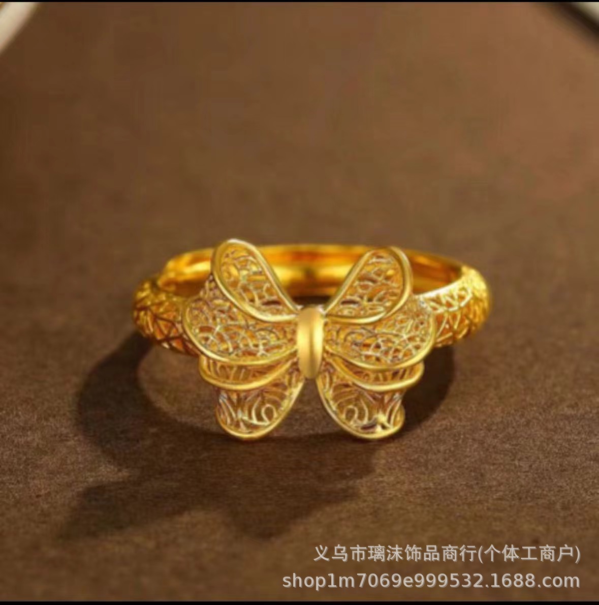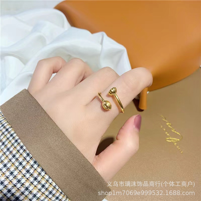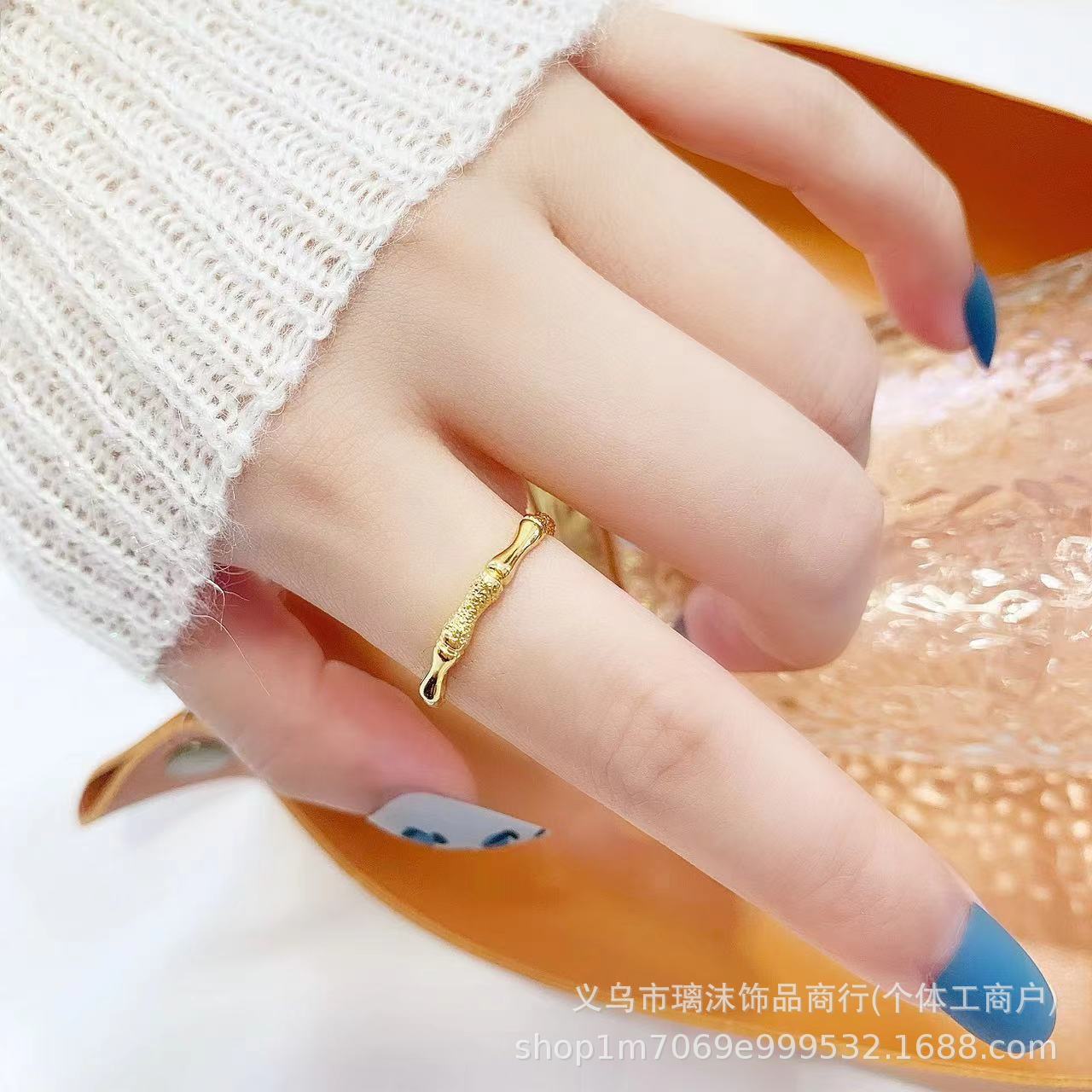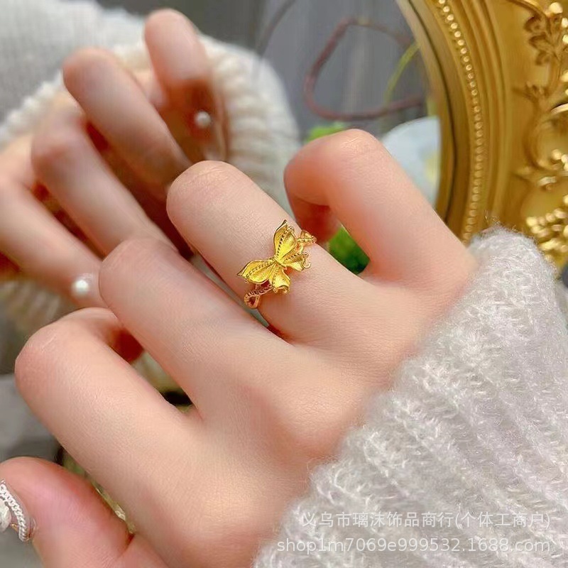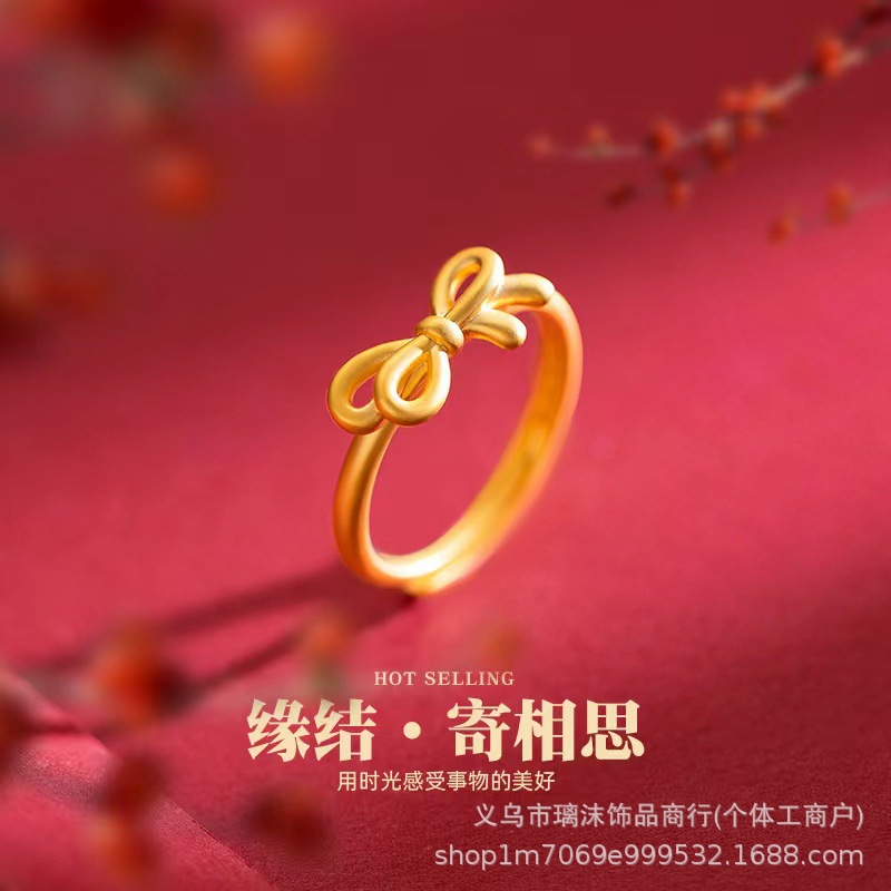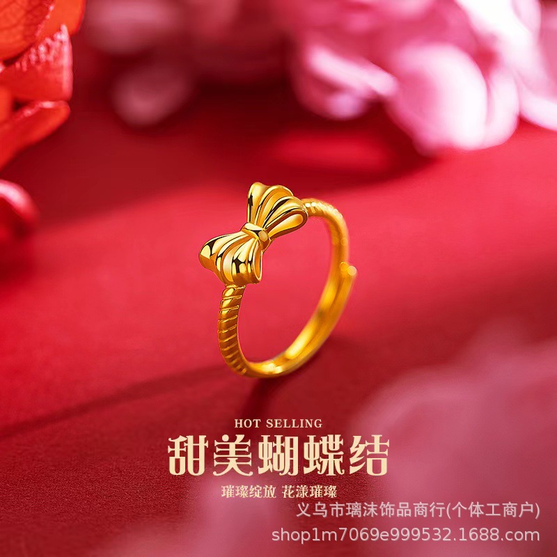 Fashionable and niche design, high-end bow women's ring, adjustable opening, gold-plated ring, brass sand-gold plated wholesale