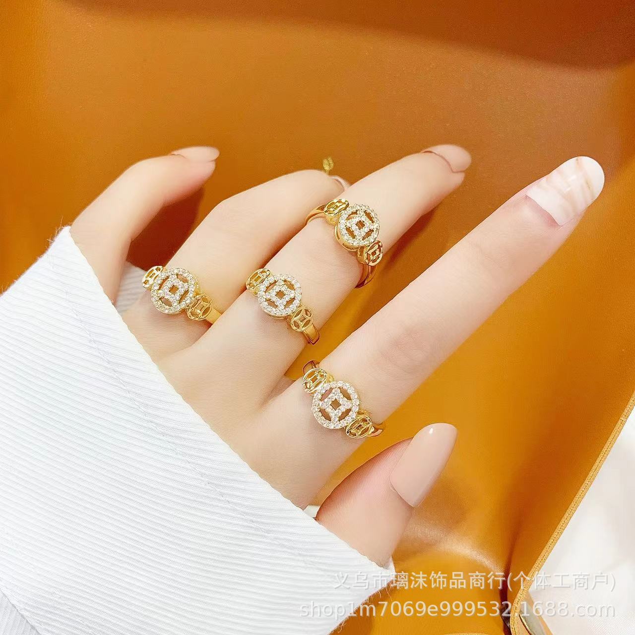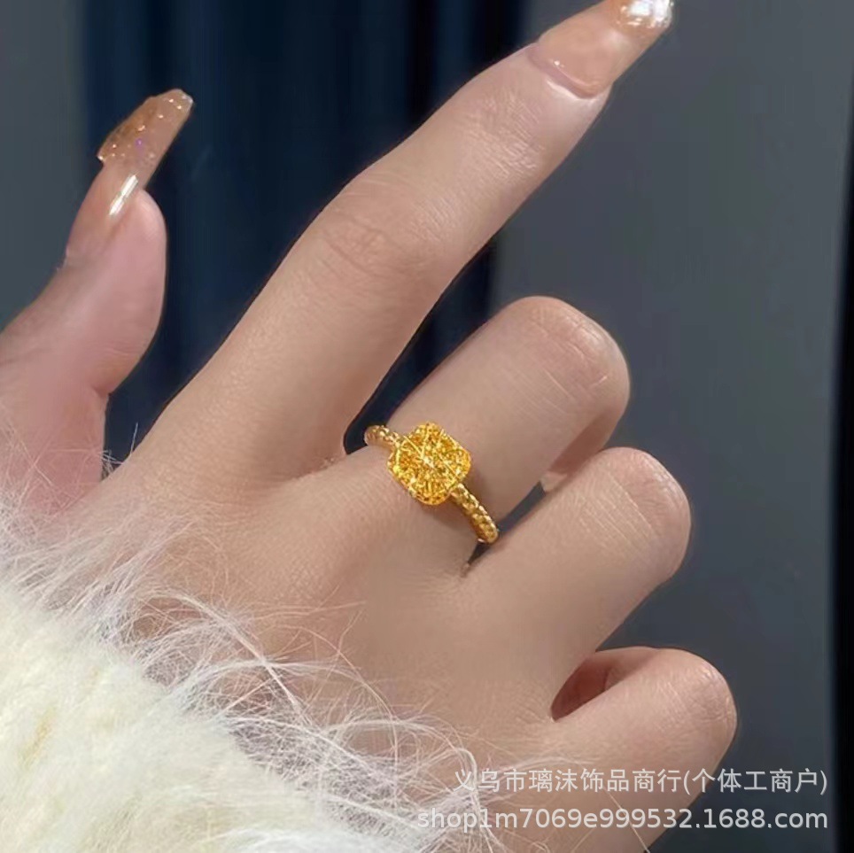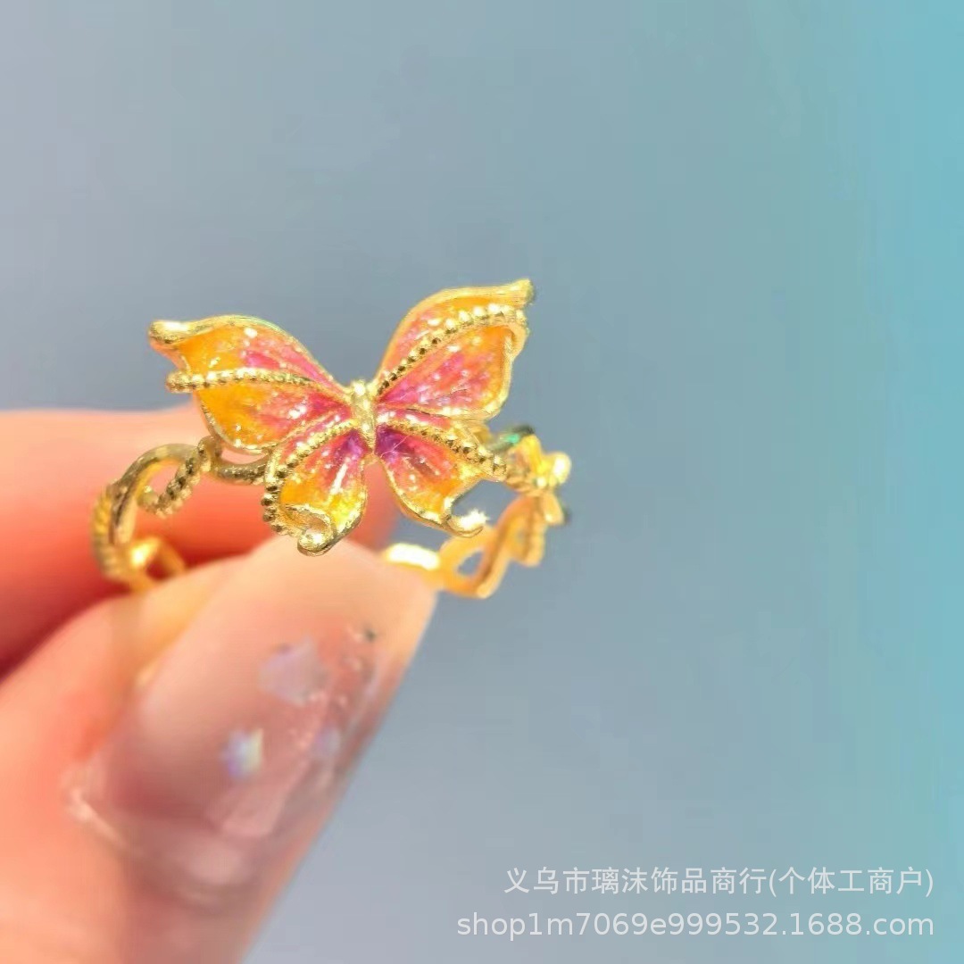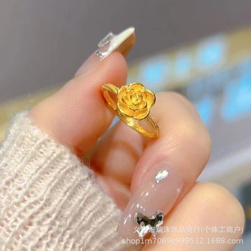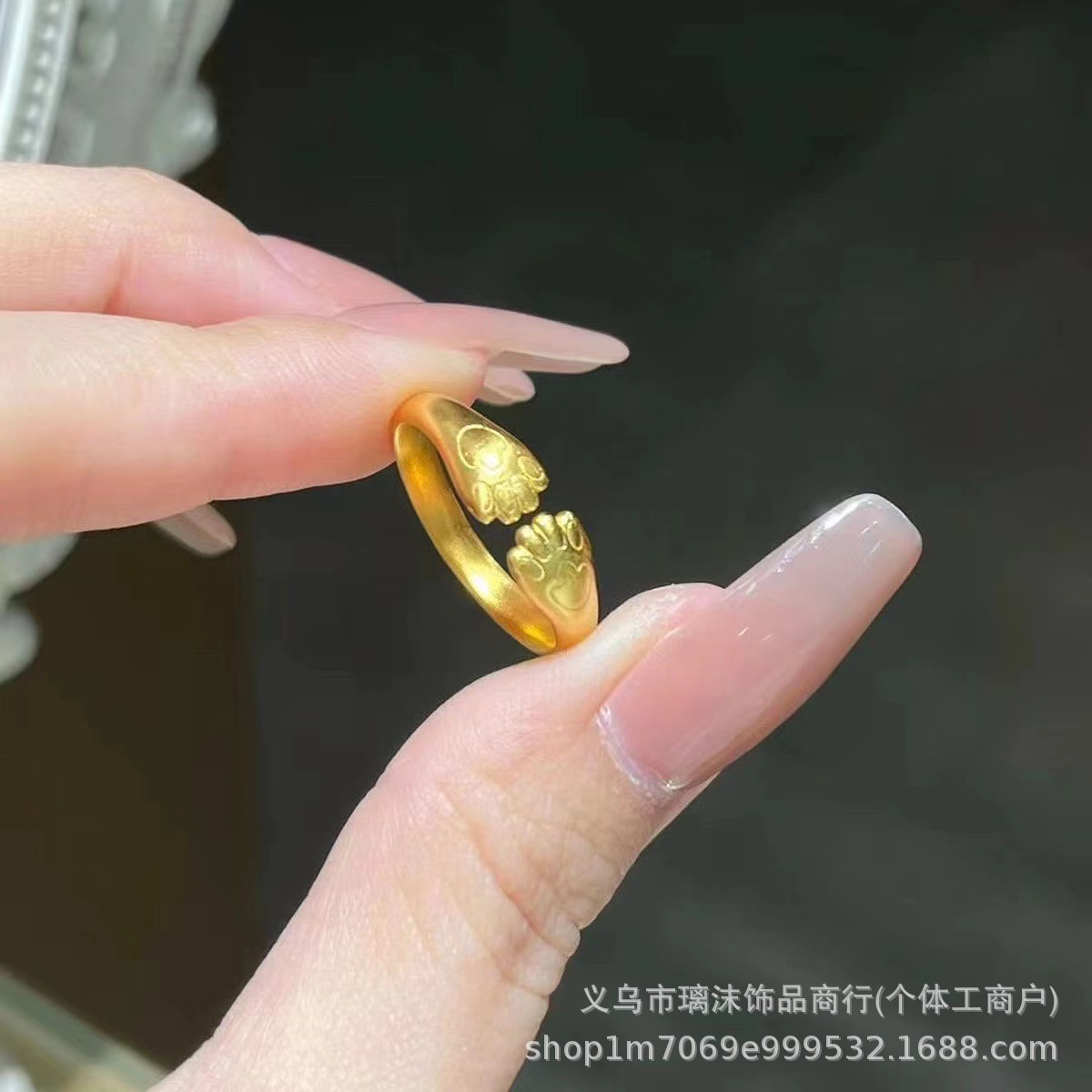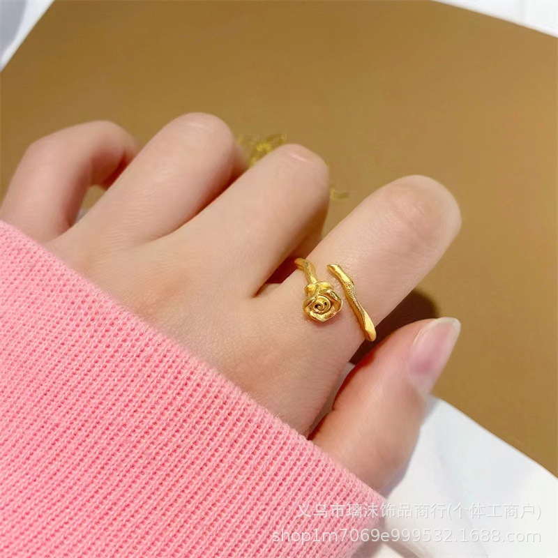 Fashionable and niche design, high-end bow women's ring, adjustable opening, gold-plated ring, brass sand-gold plated wholesale