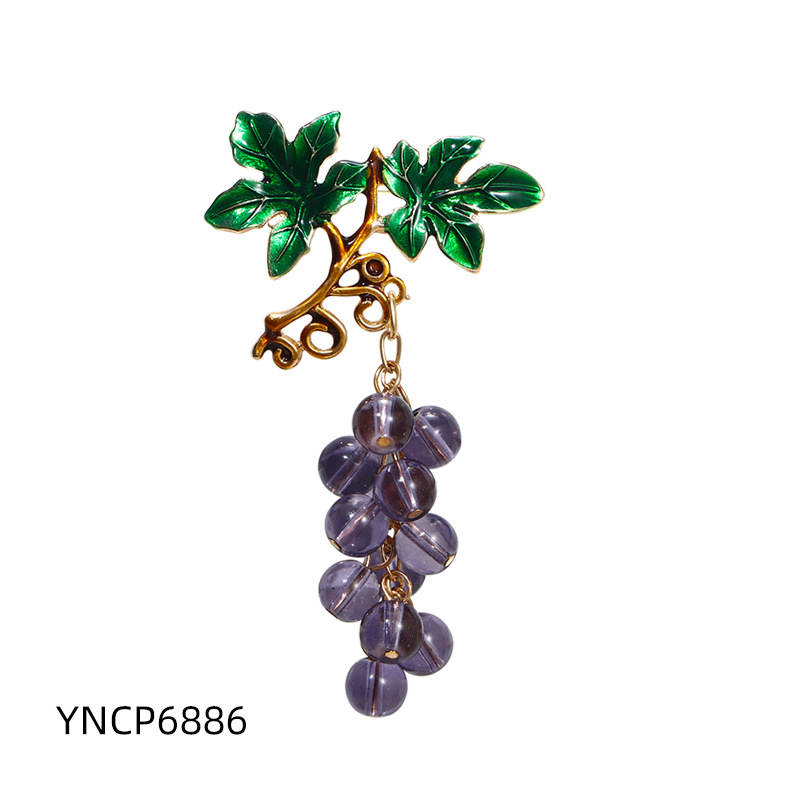 Fashionable and versatile purple grape diamond-encrusted brooch, a niche design with a high-end feel. Fruit and grape string accessory brooch