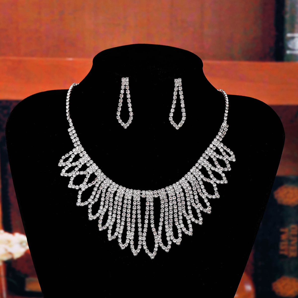 Fashionable European and American style cross-border new jewelry, metal diamond-encrusted wedding bride jewelry set, two-piece set, necklace and earrings