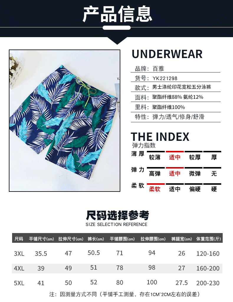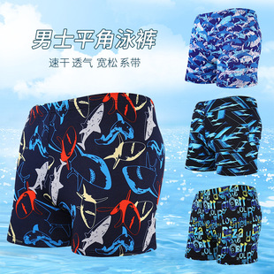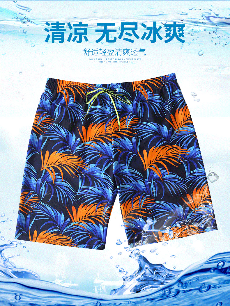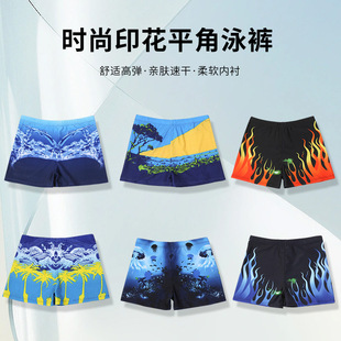 Fashionable men's swimming trunks, digital printed polyester fabric, comfortable and breathable, large-sized anti-embarrassment hot spring beach swimming trunks