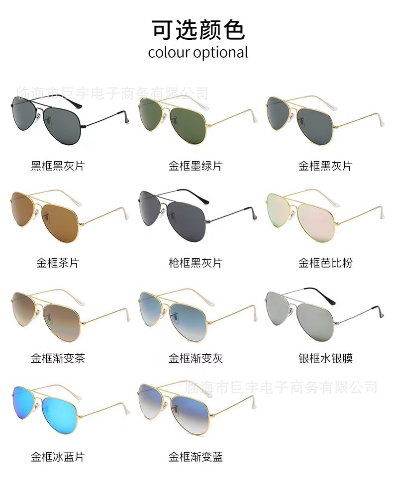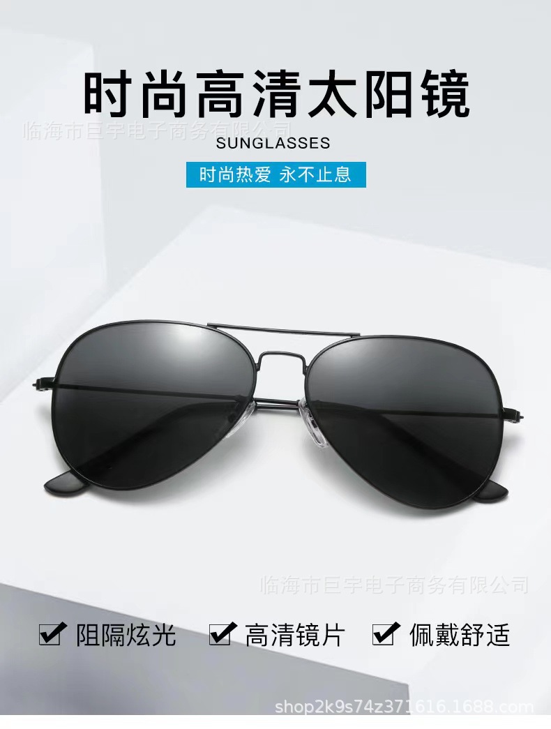 Fashionable metal men's sunglasses, European and American fashion 3026 glass lens sunglasses, pilot's style sunglasses
