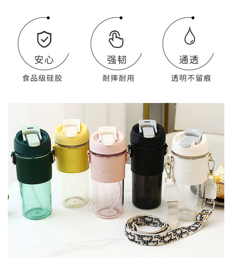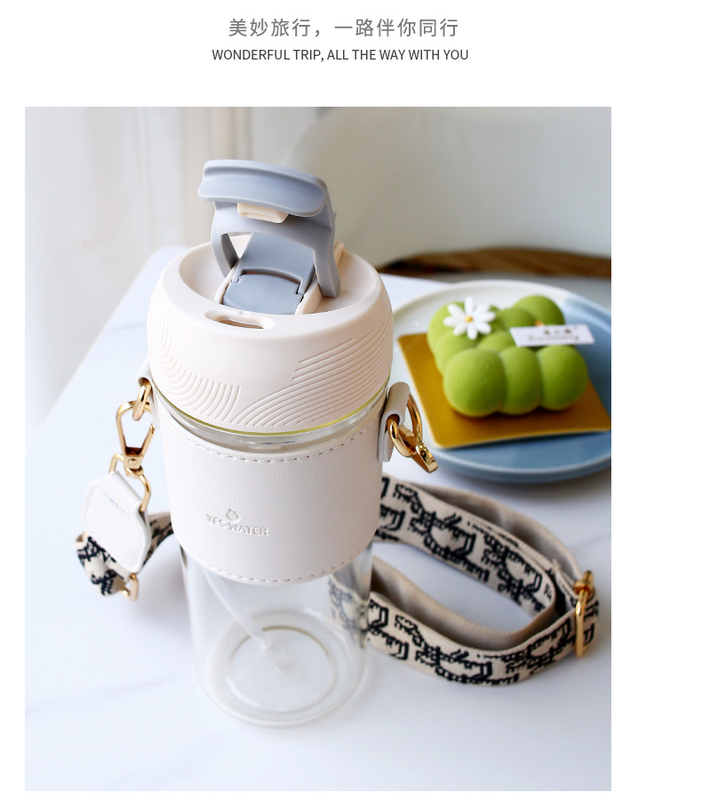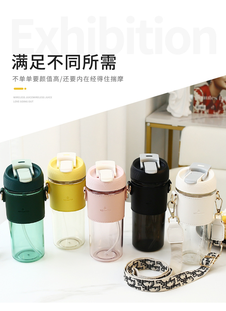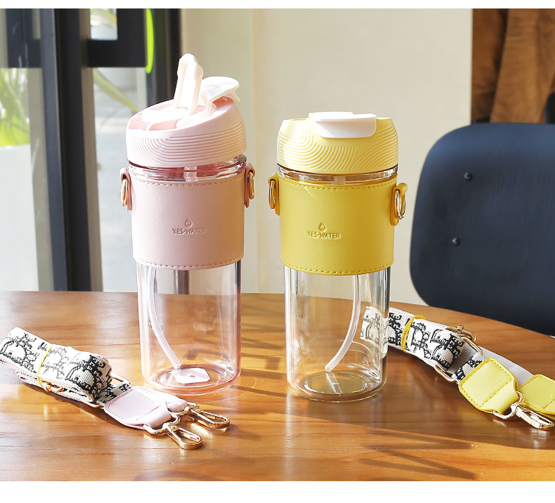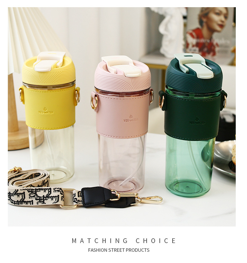 Fashionable, portable, crossbody, shoulder-strap water cup, women's Nordic coffee cup, plastic straw cup manufacturer wholesale