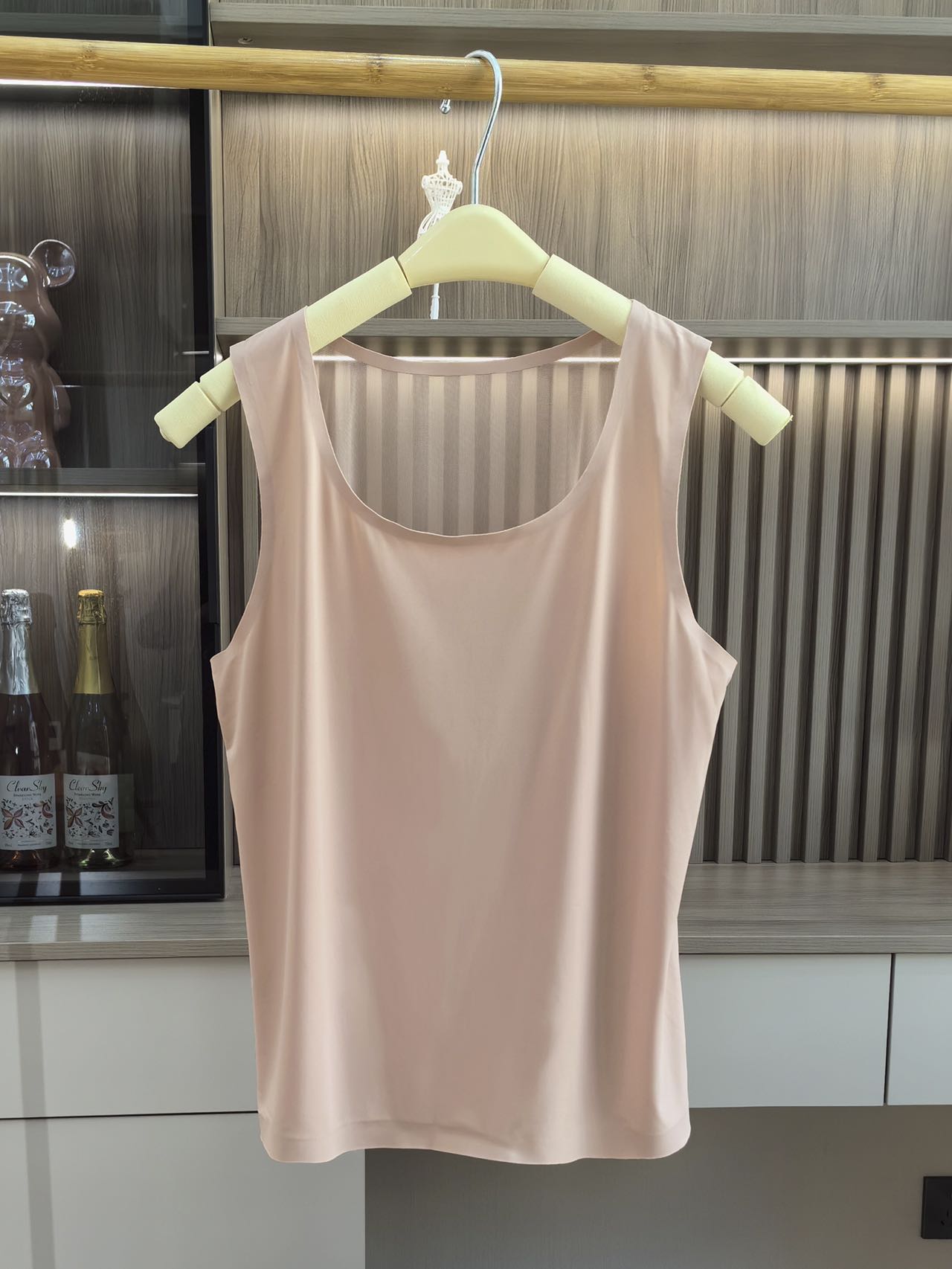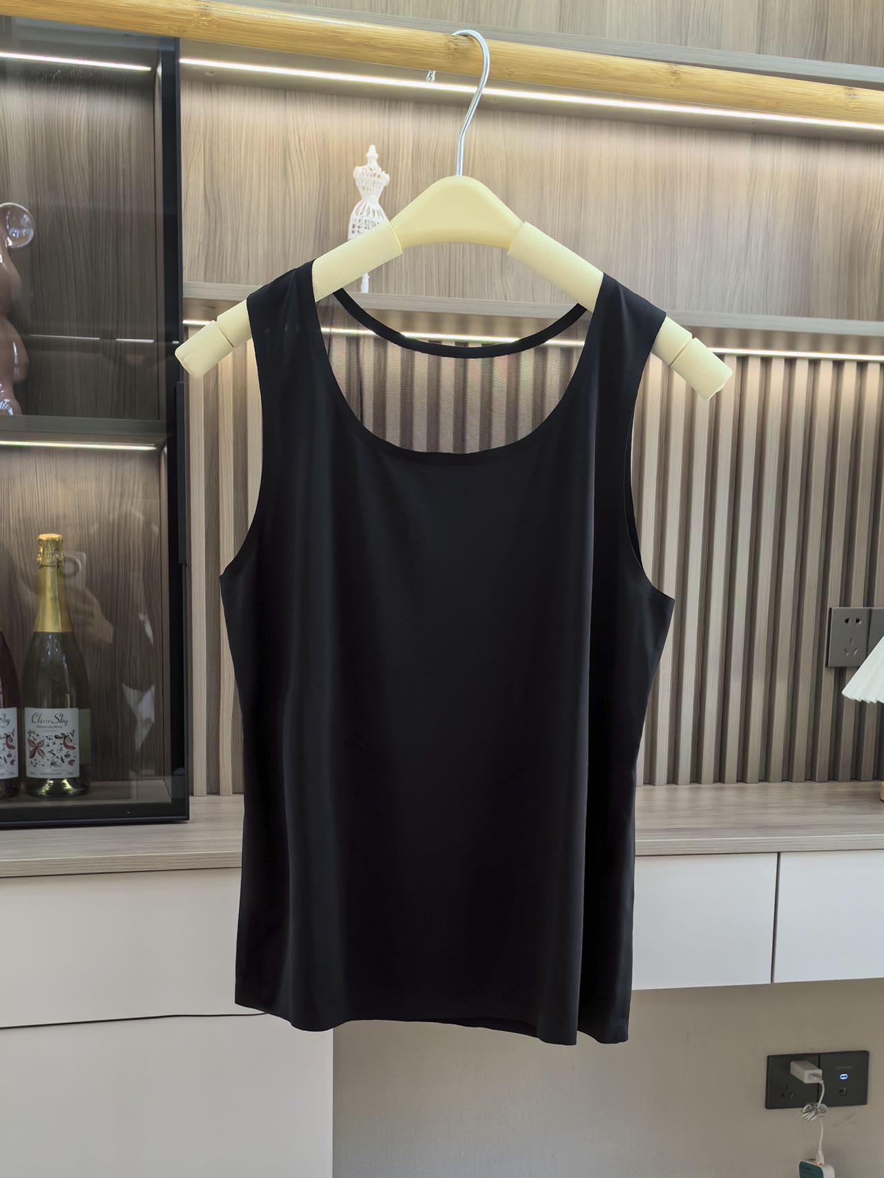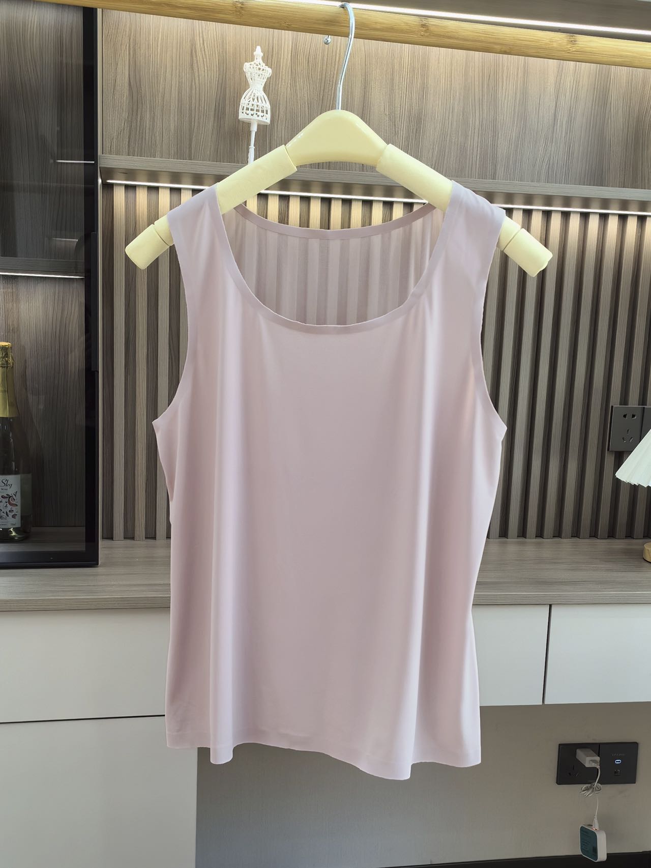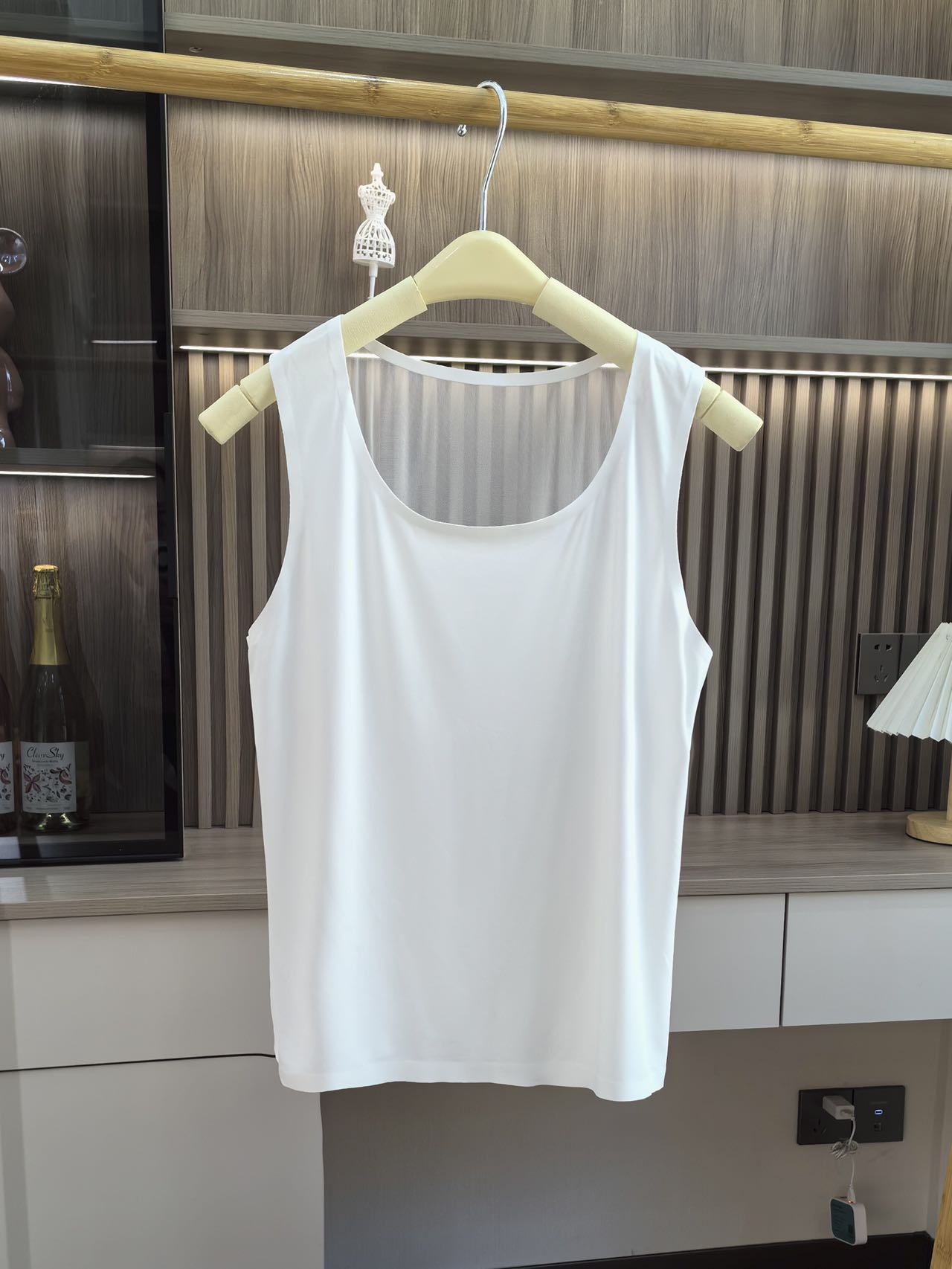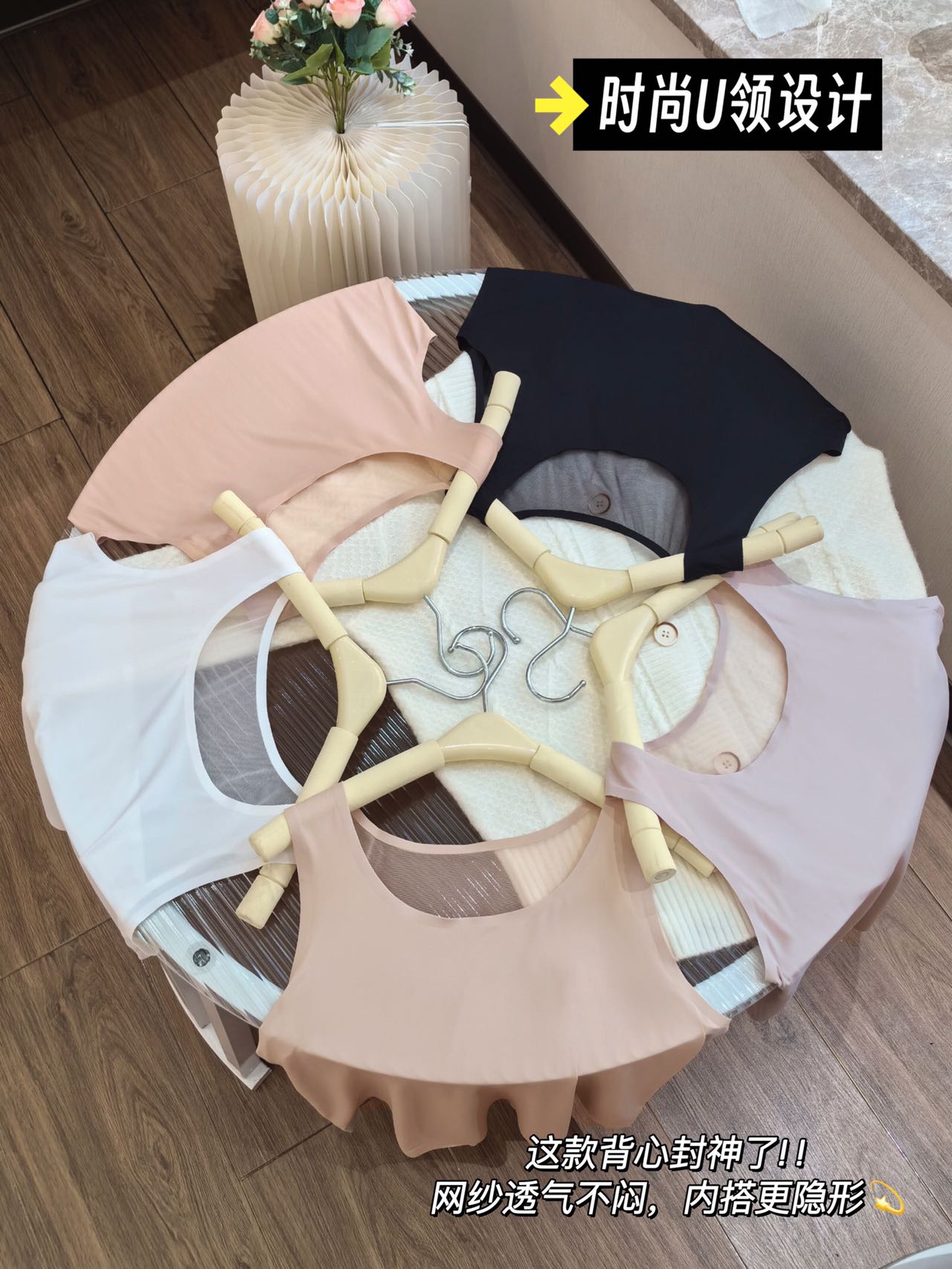 Fashionable U-neck ice silk, comfortable, breathable, seamless, anti-slip, wide shoulder strap, simple lace mesh patchwork base vest