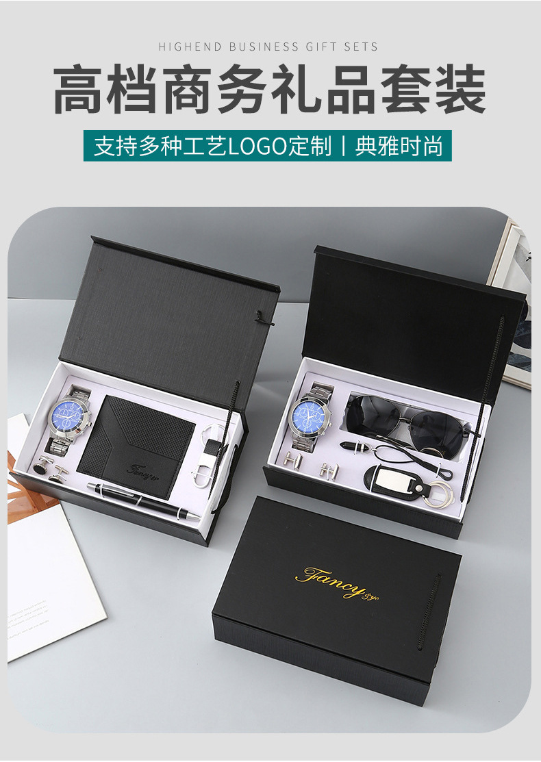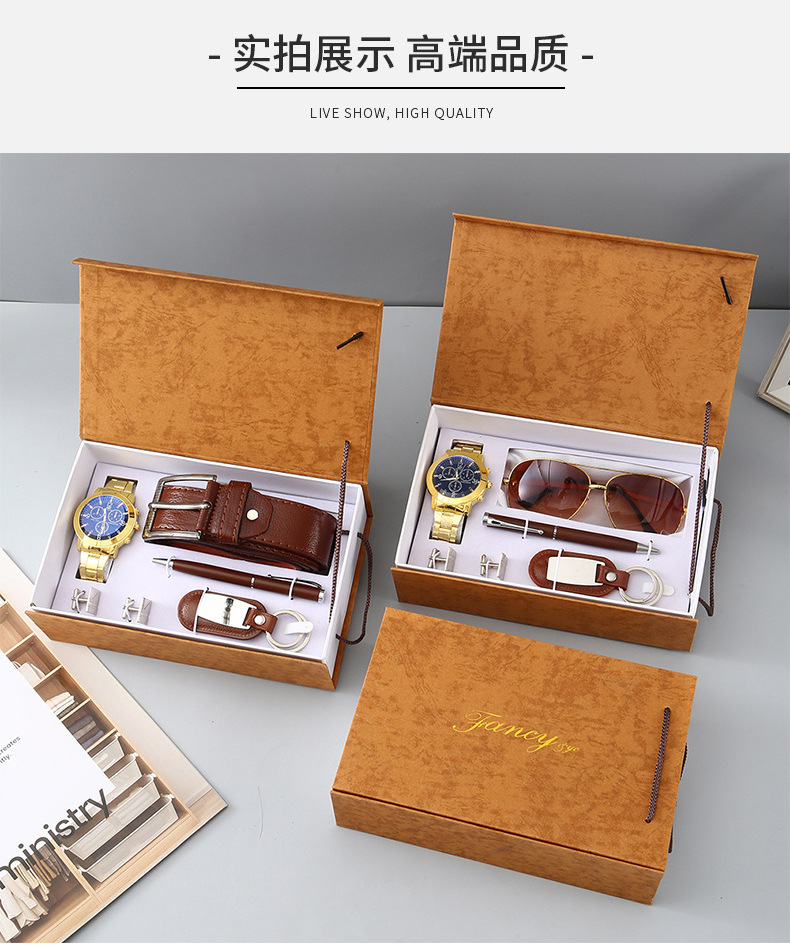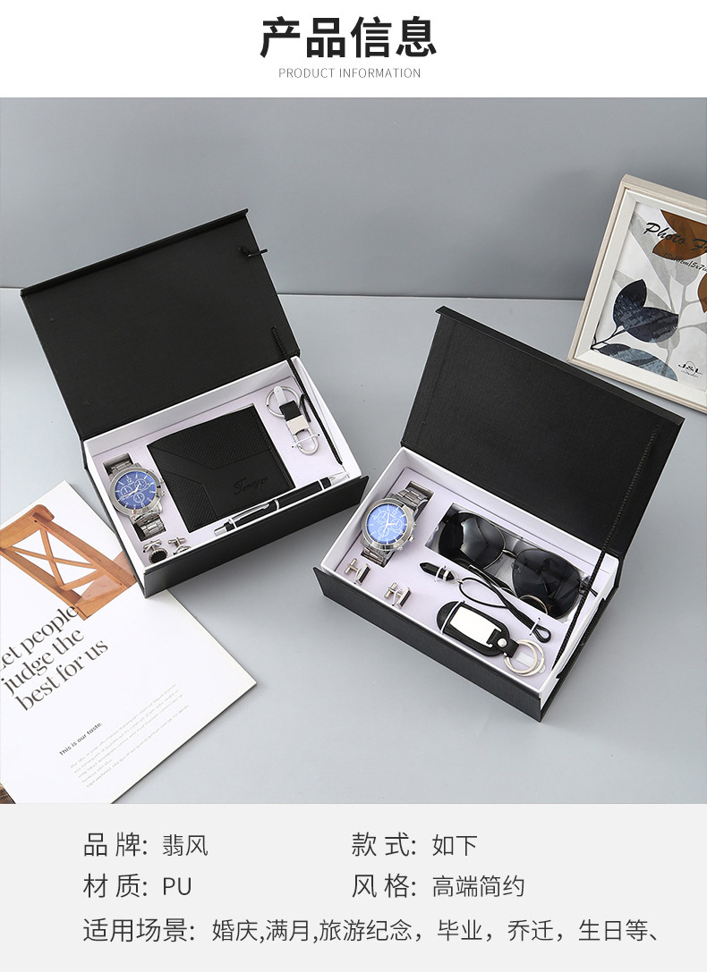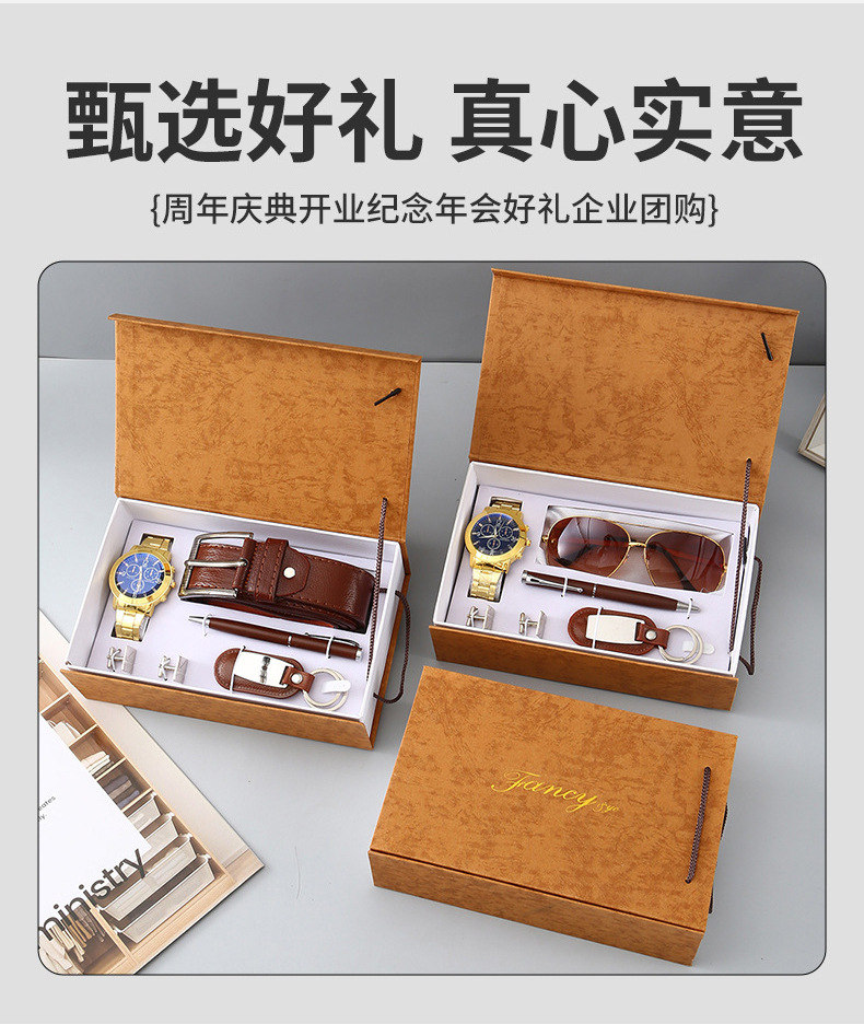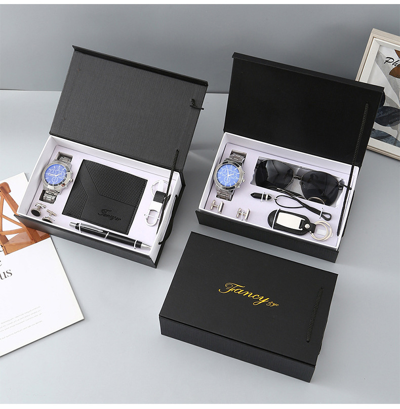 Father's Day gift set for men: Quartz watch, sunglasses, ballpoint pen, keychain, business box set