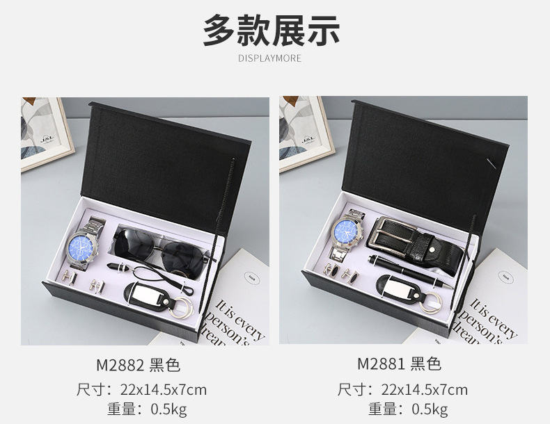 【M2881# Black 】 5-piece Set (Steel Watch + Leather Strap + Pen + Keychain + cufflinks)