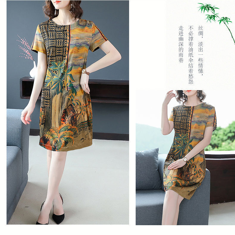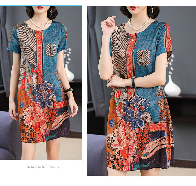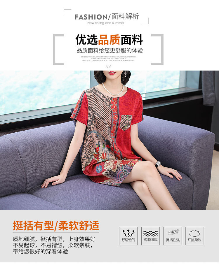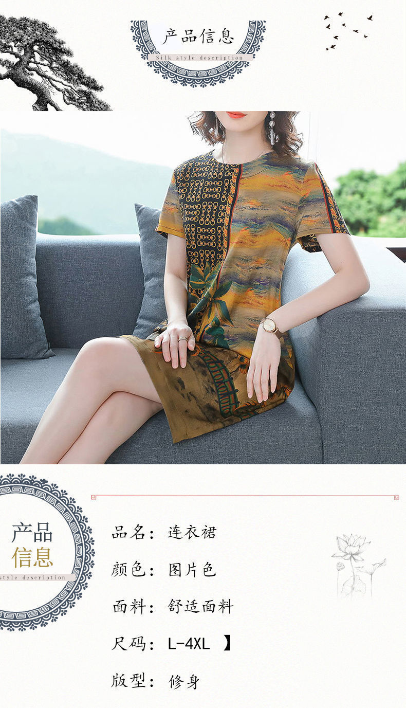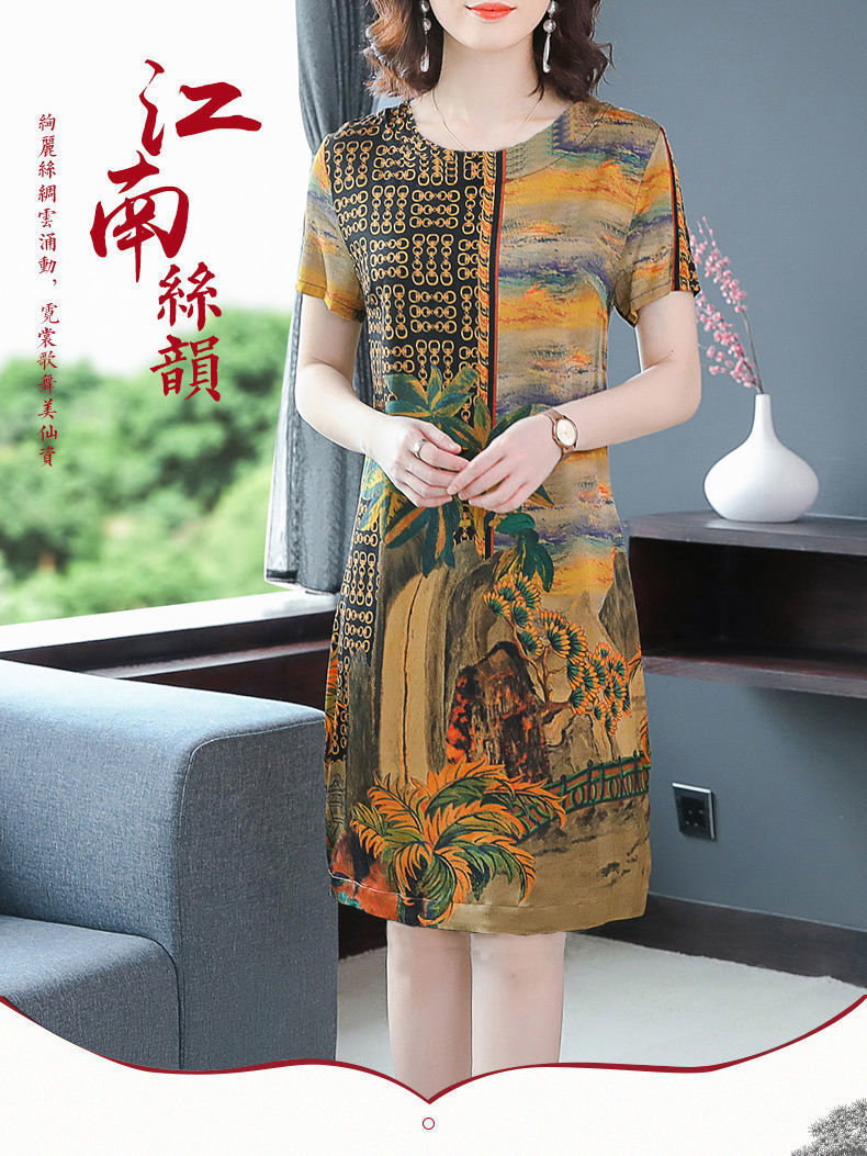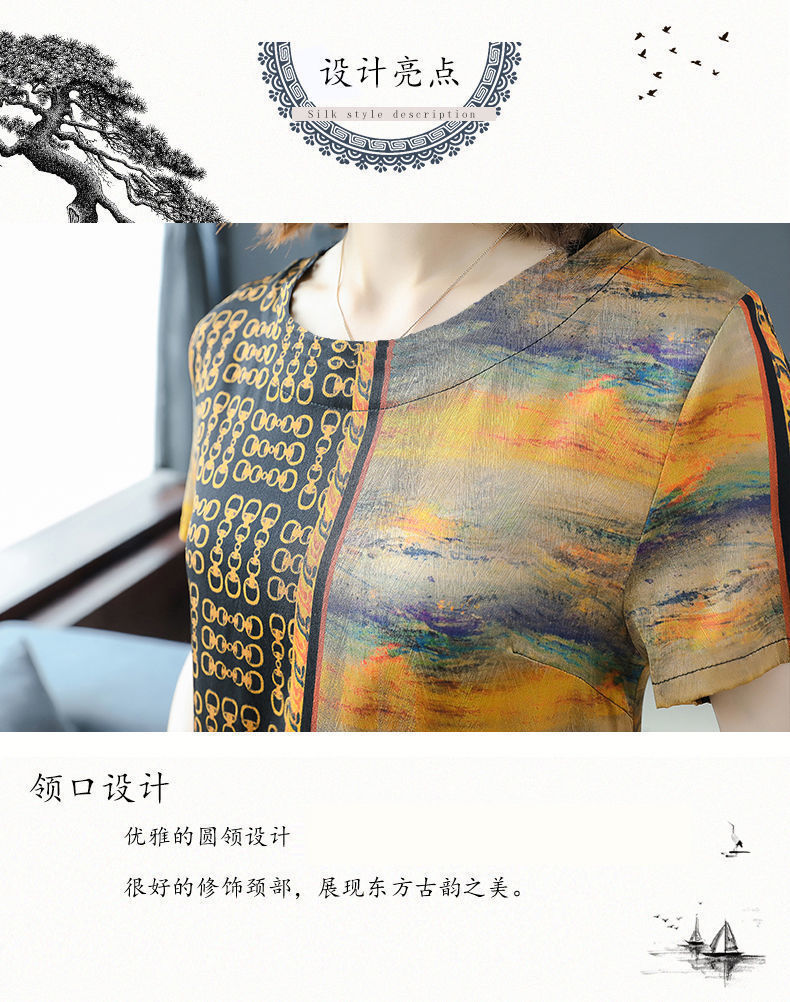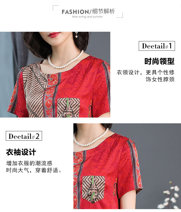 Faux Ice Silk 2021 Season New Mom's Dress, floral print, stylish large-sized T-shirt, short-sleeved printed top for middle-aged and elderly people, summer