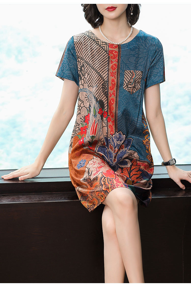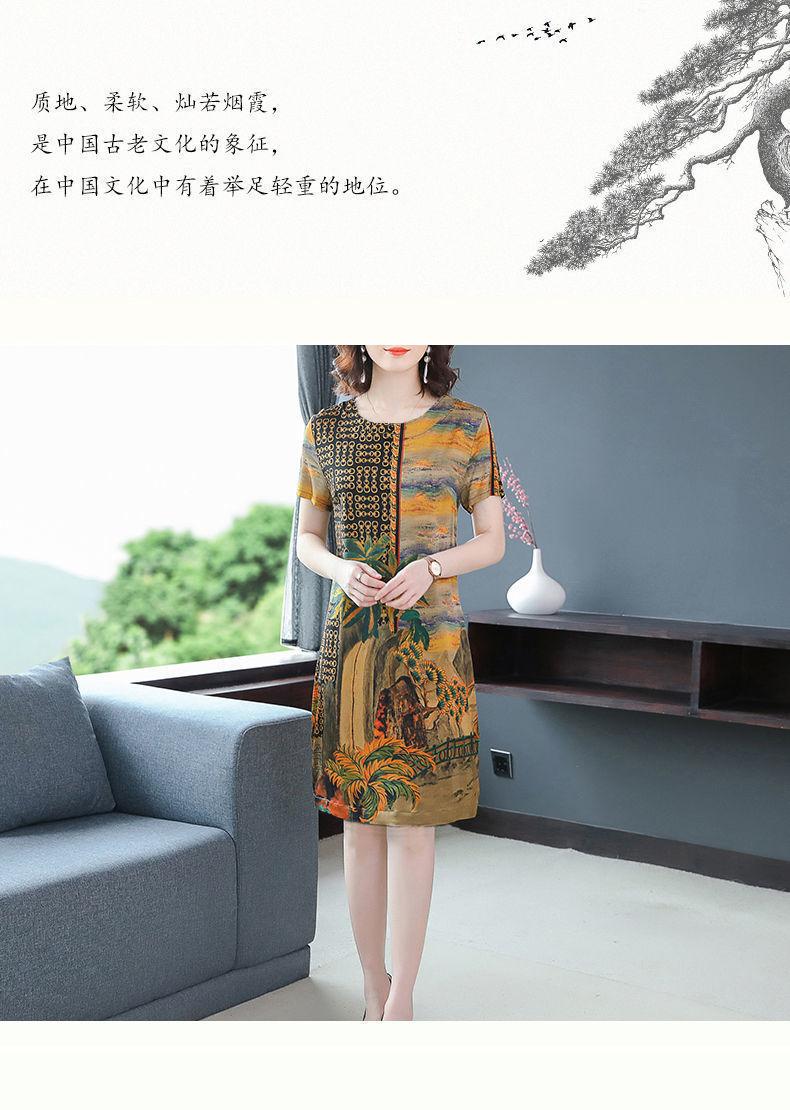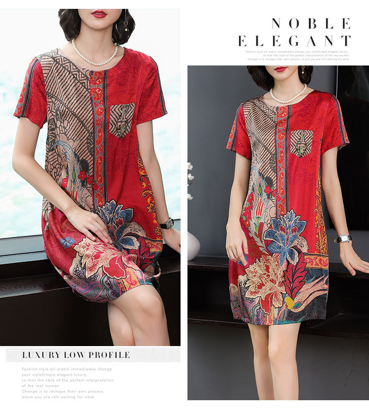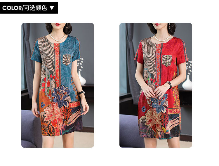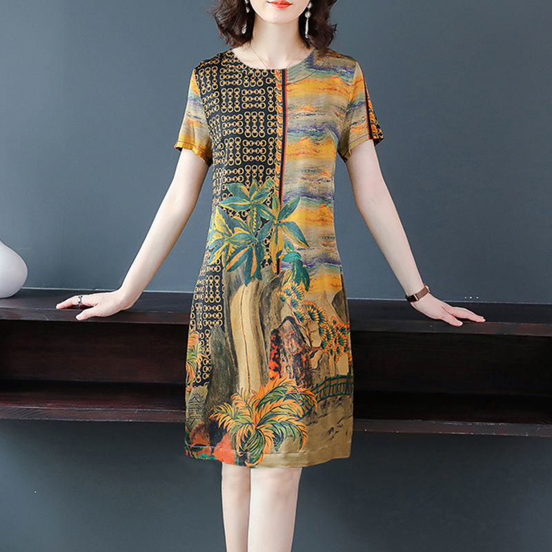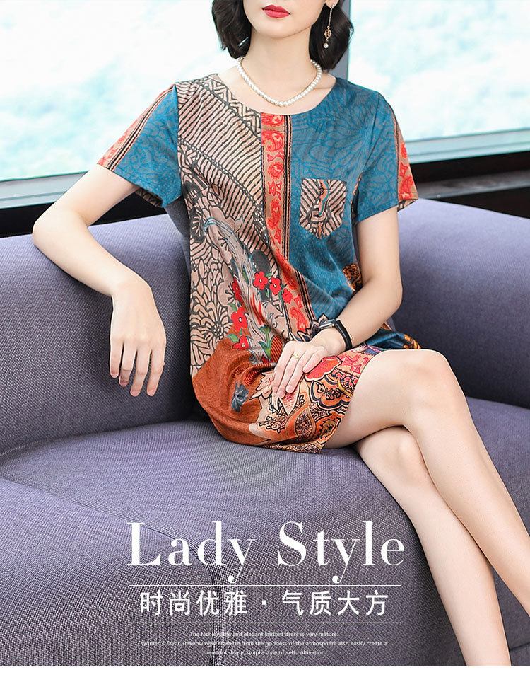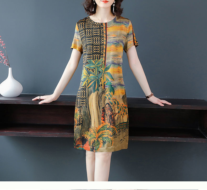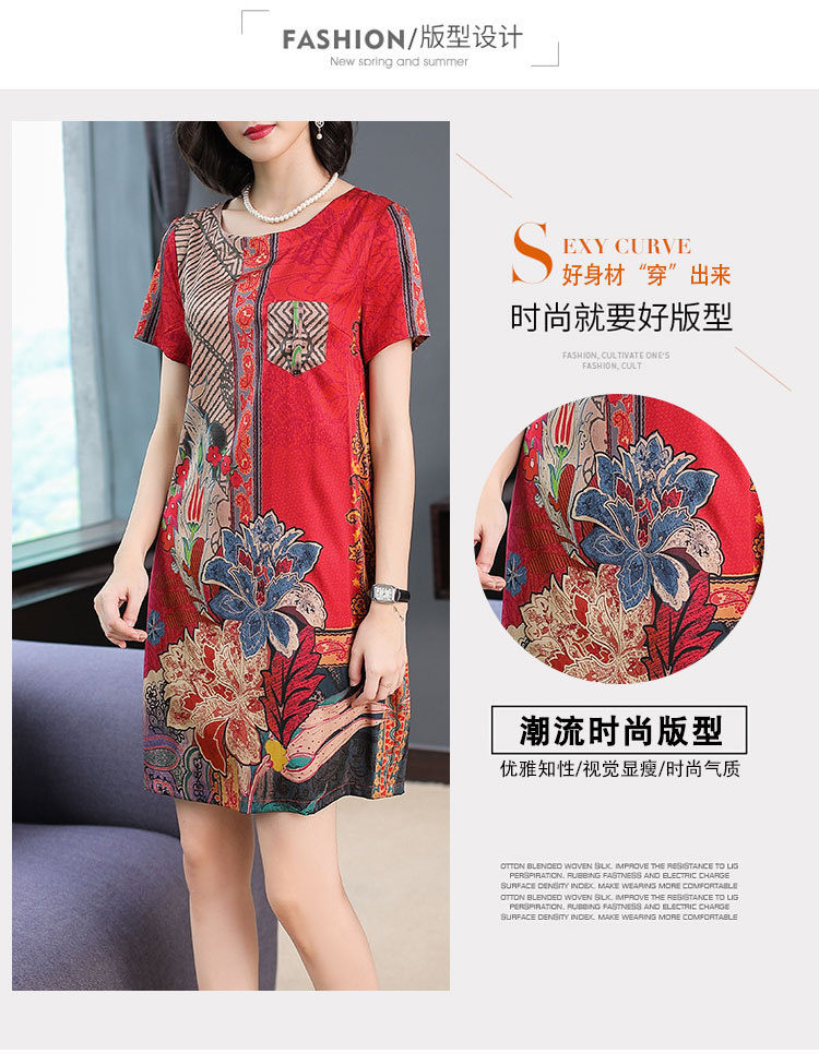 Faux Ice Silk 2021 Season New Mom's Dress, floral print, stylish large-sized T-shirt, short-sleeved printed top for middle-aged and elderly people, summer