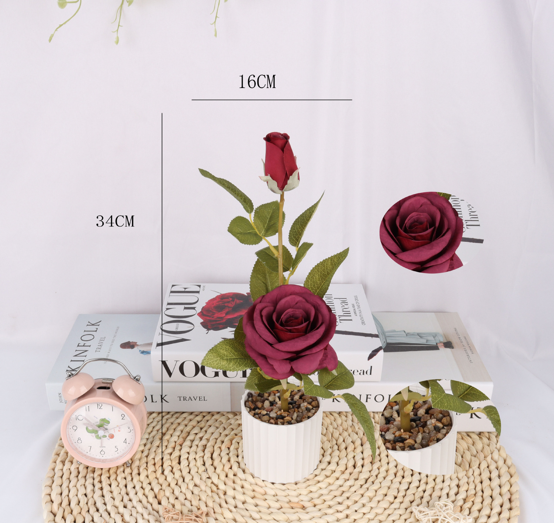 Faux matte fabric rose potted plants/faux flower bonsai/home ornaments/faux flower creative interior small ornaments /