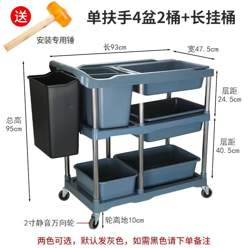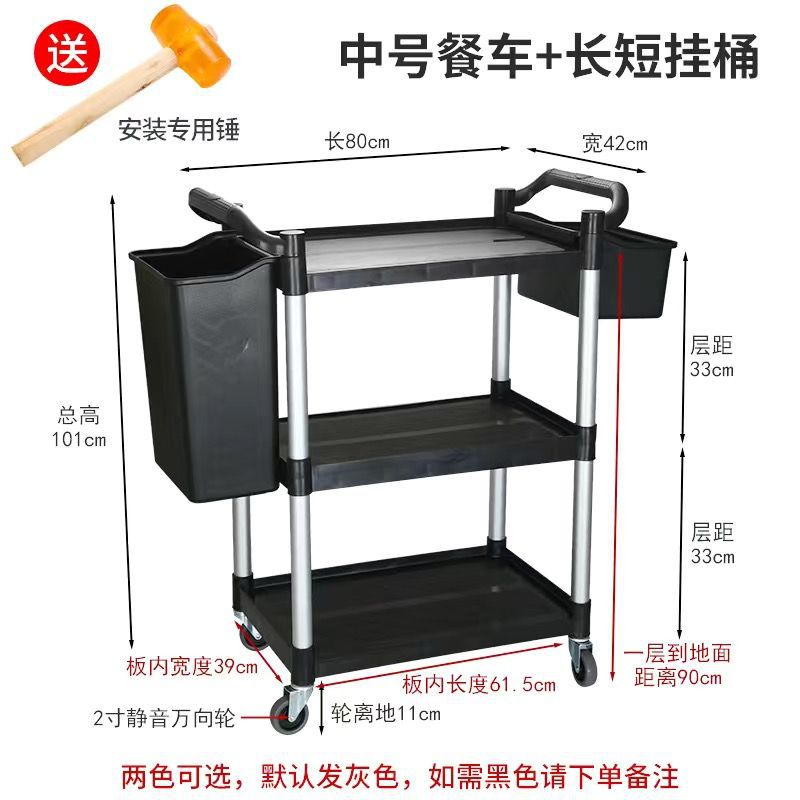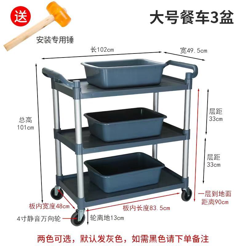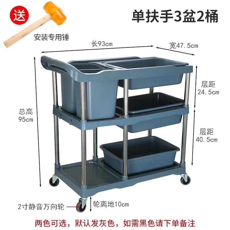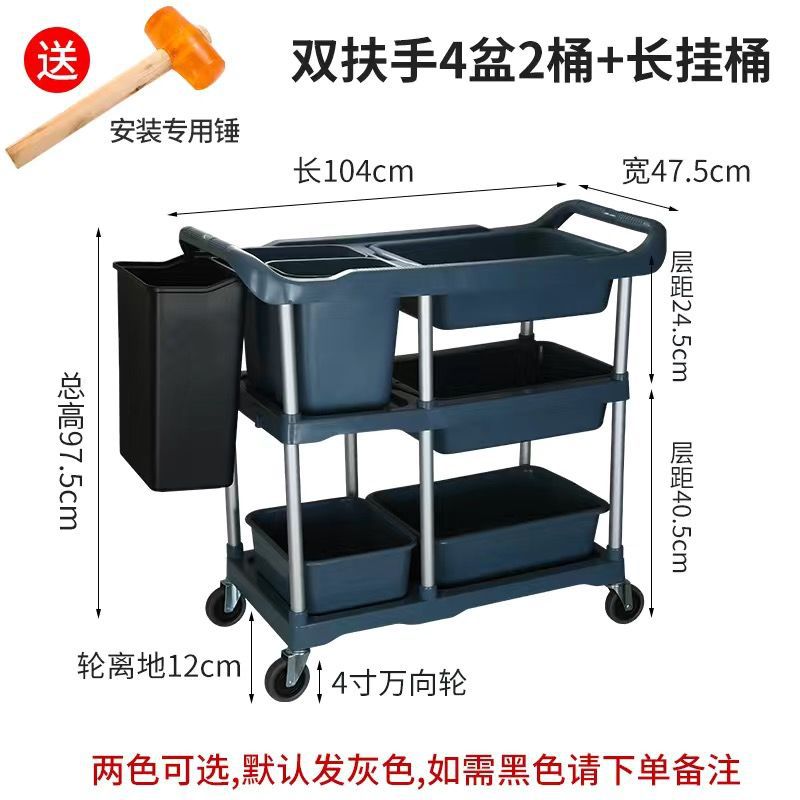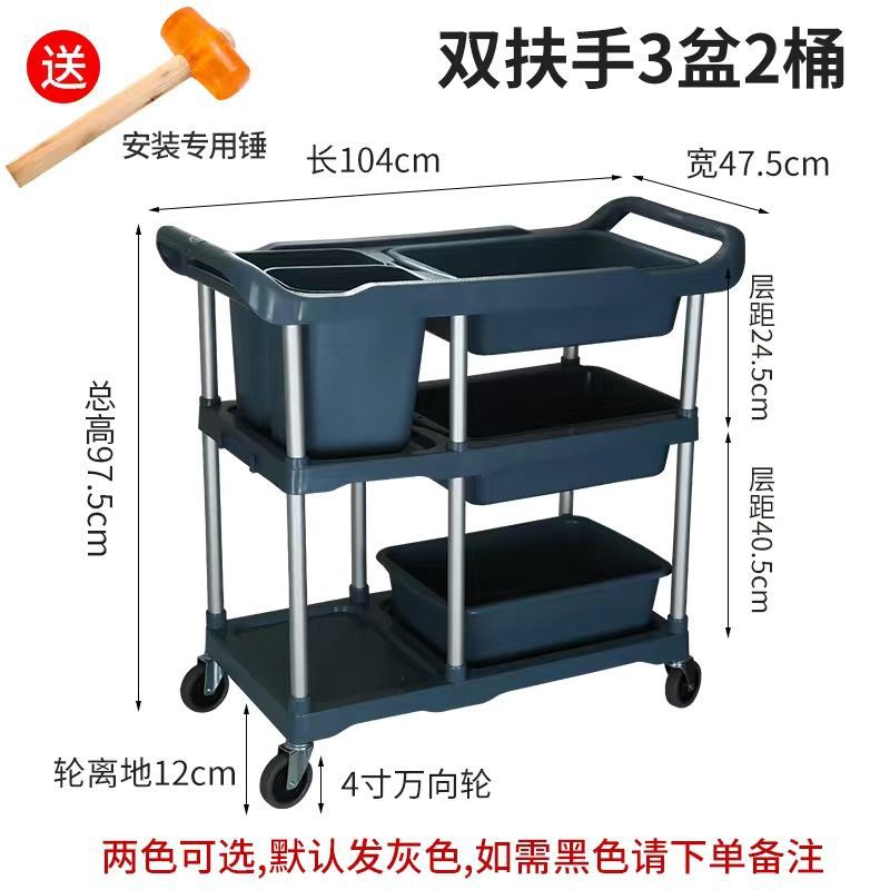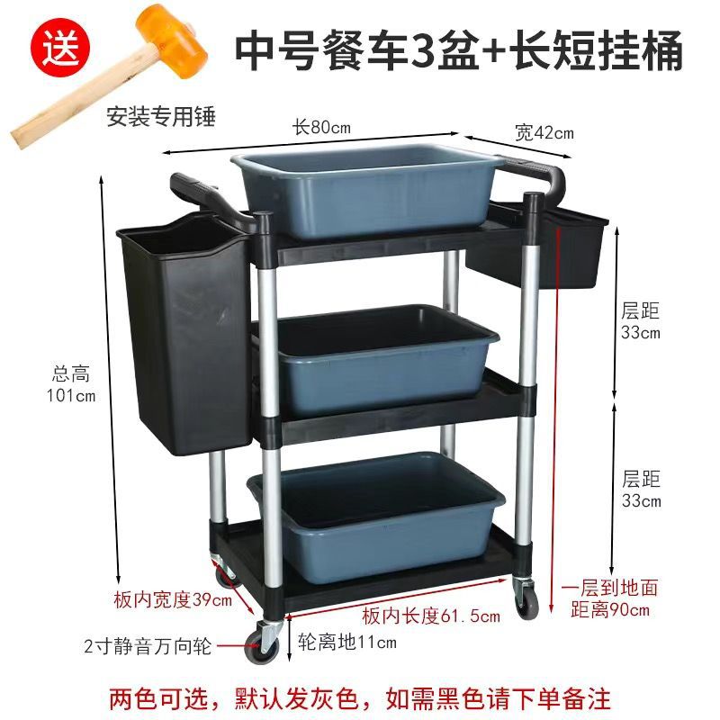 Extra-thick - Large three-layer dining cart +3 basins + long and short hanging buckets
