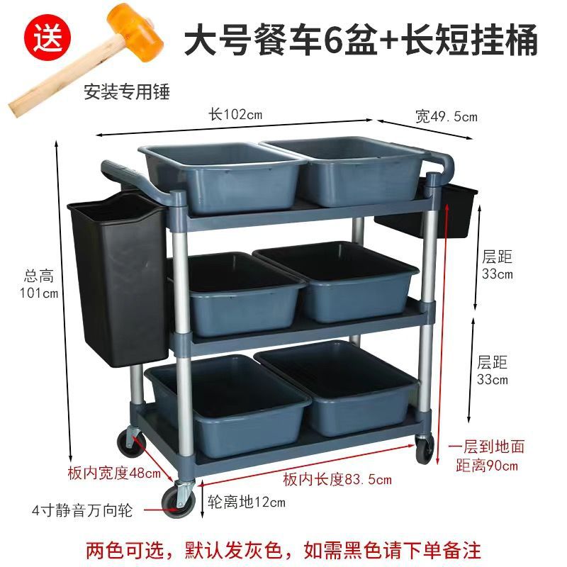 Extra thick - Large three-layer dining car with 6 basins + long and short hanging buckets