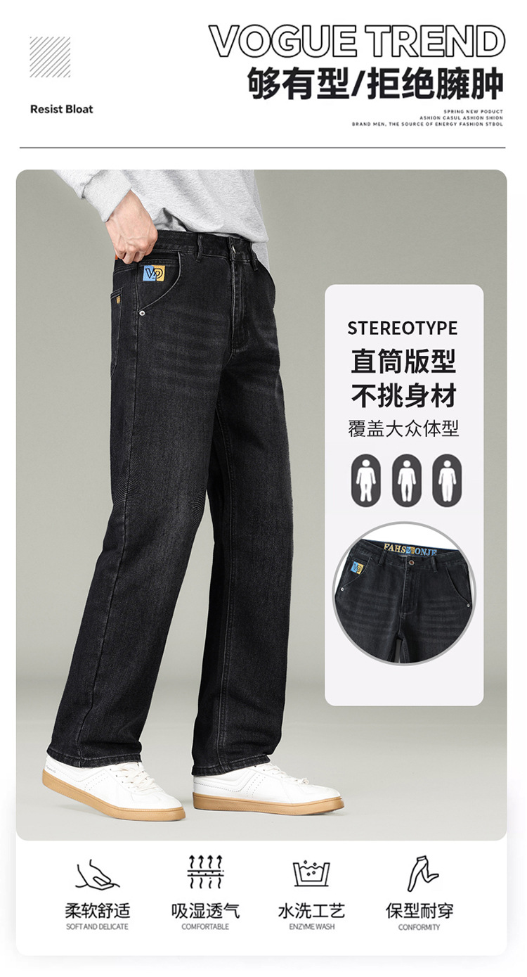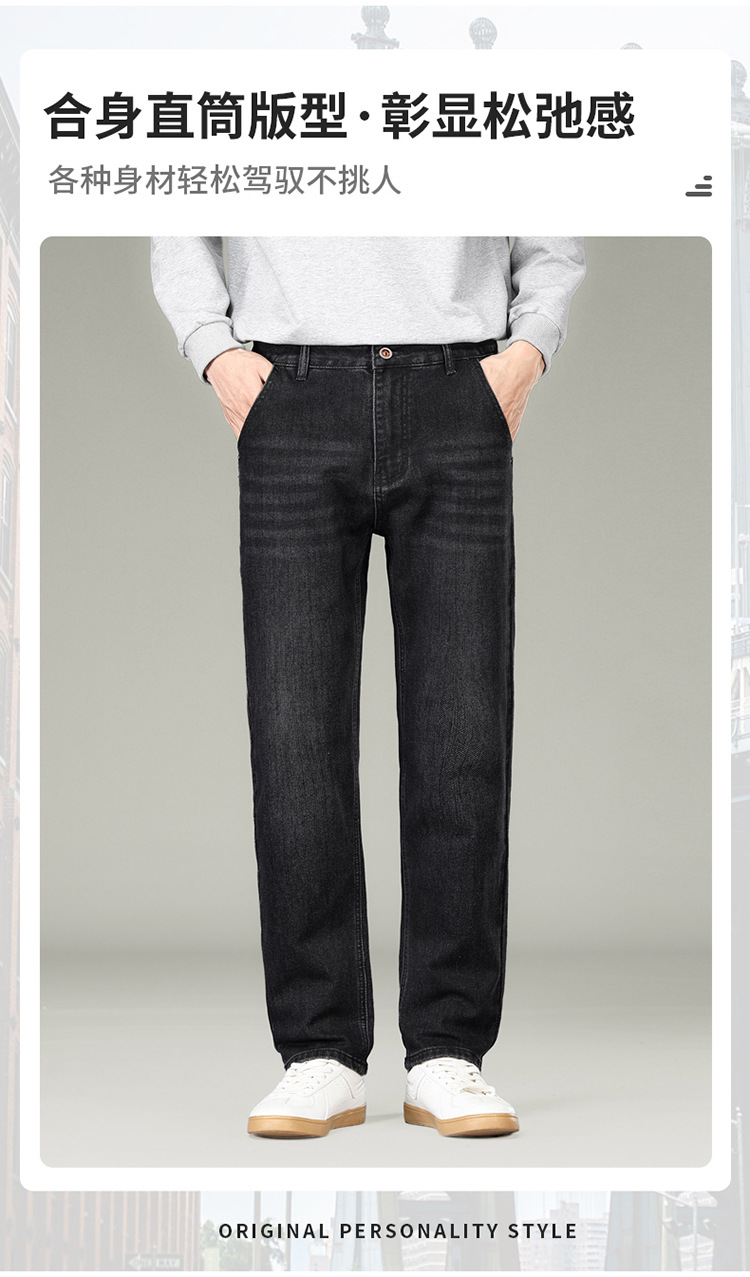 Fengshe Men's Wear /2025 Autumn/Winter New Thick stretch Business Men's jeans Straight leg pants Narrow version wide leg