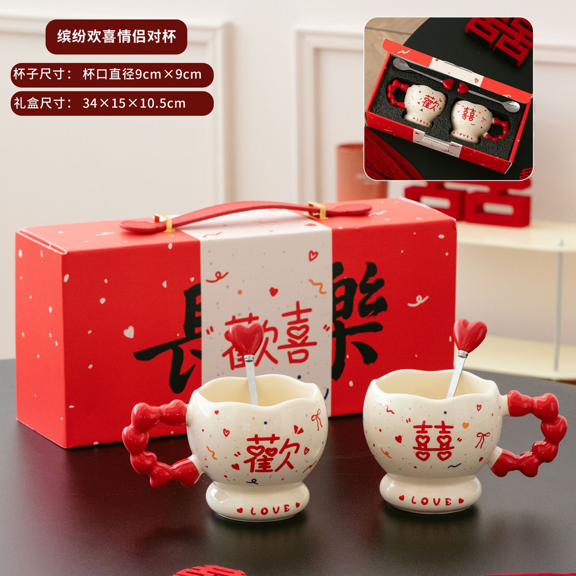 Festive and heartwarming ceramic cups with high appearance standards, couple mugs with spoons, exquisite pairs of cups, wedding gifts for newlyweds