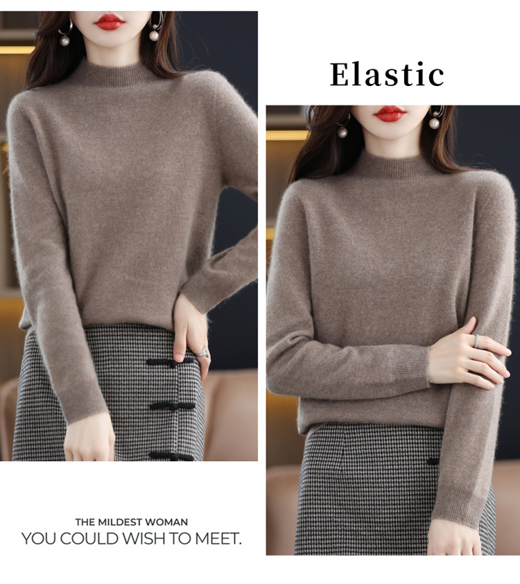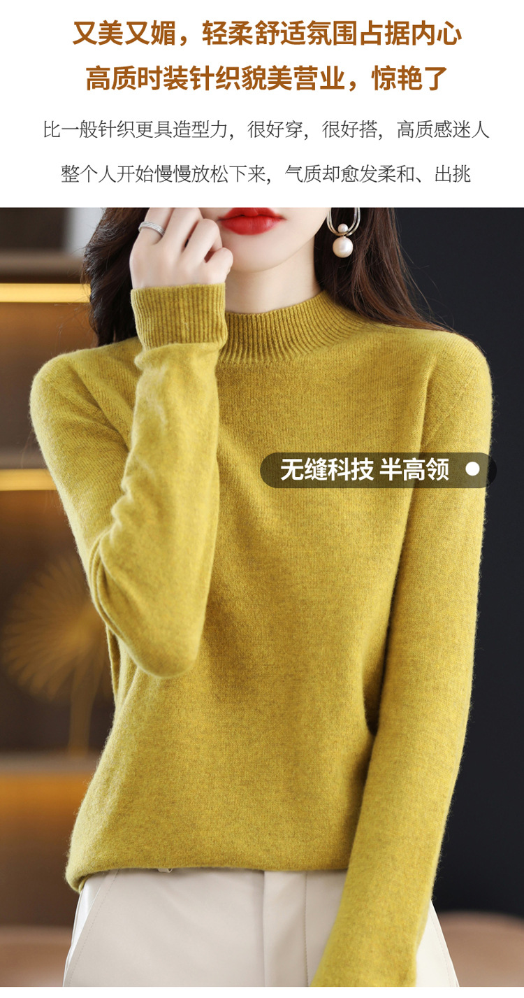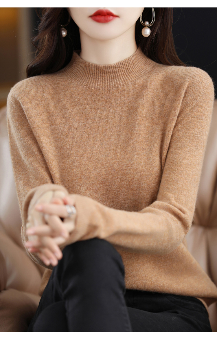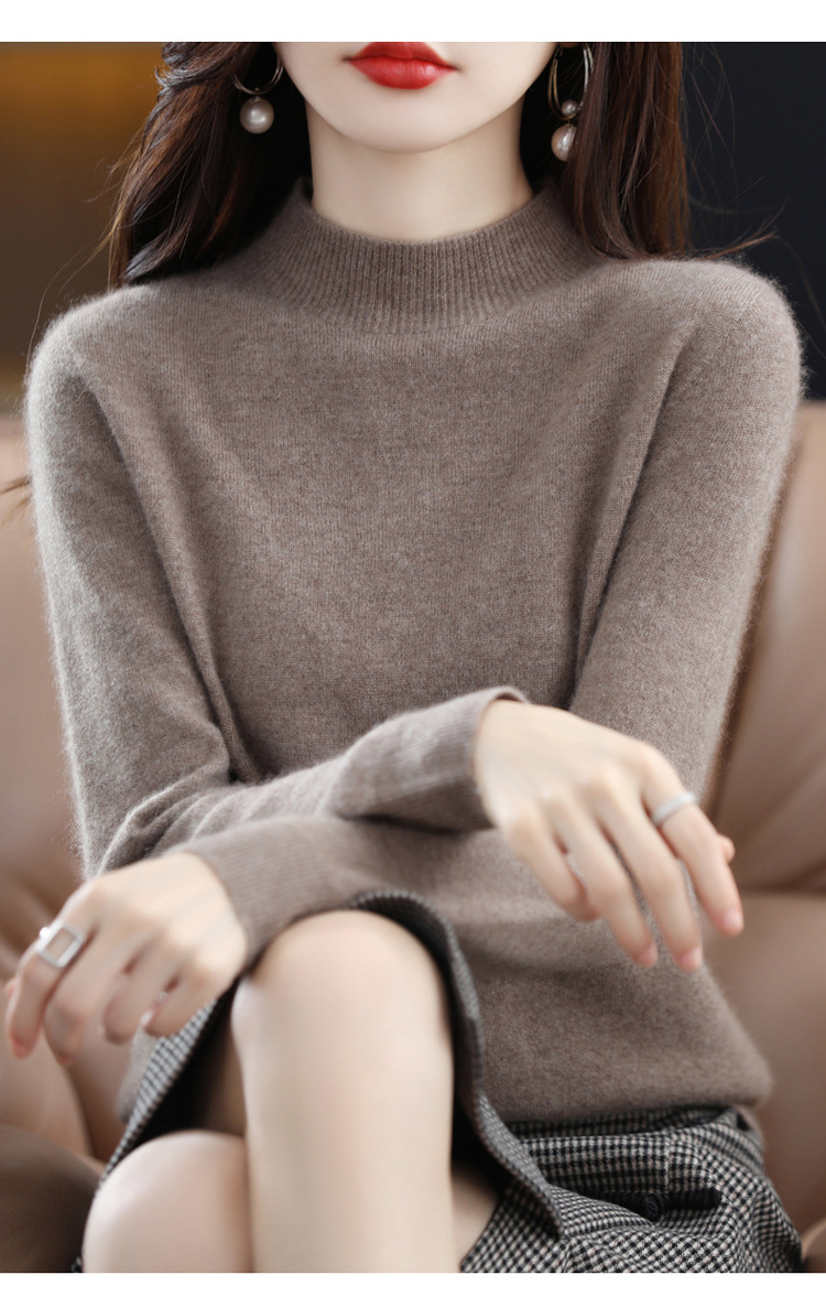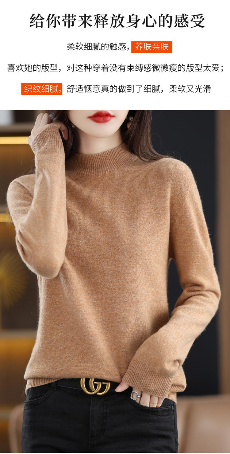 First-line ready-to-wear semi-high-neck wool sweater for women's autumn and winter, simple and versatile cashmere sweater, loose pullover knitted base layer