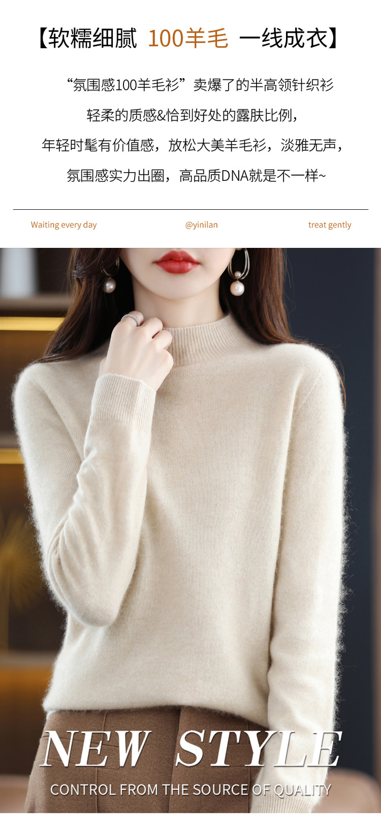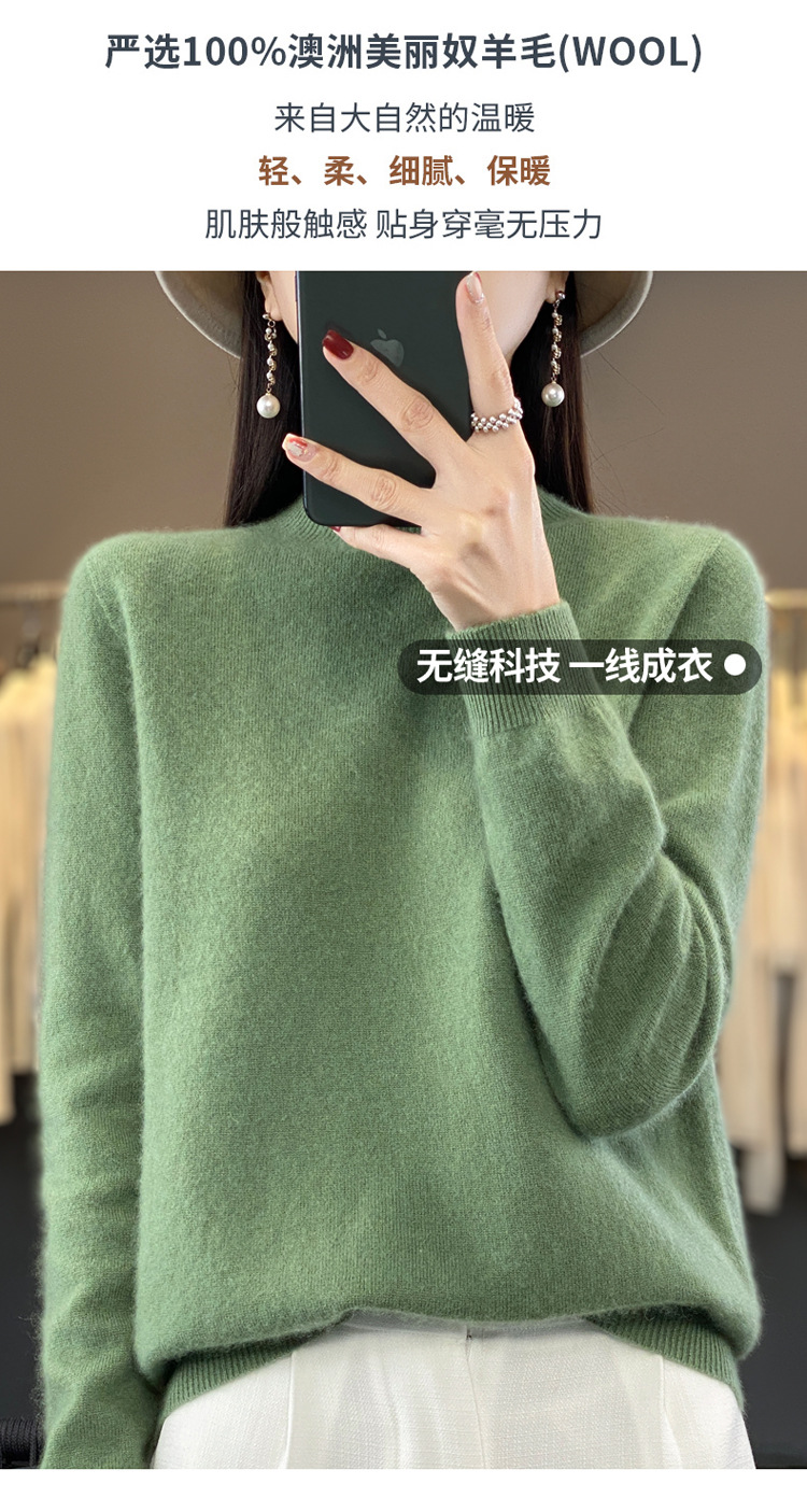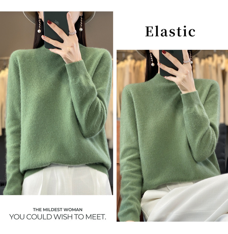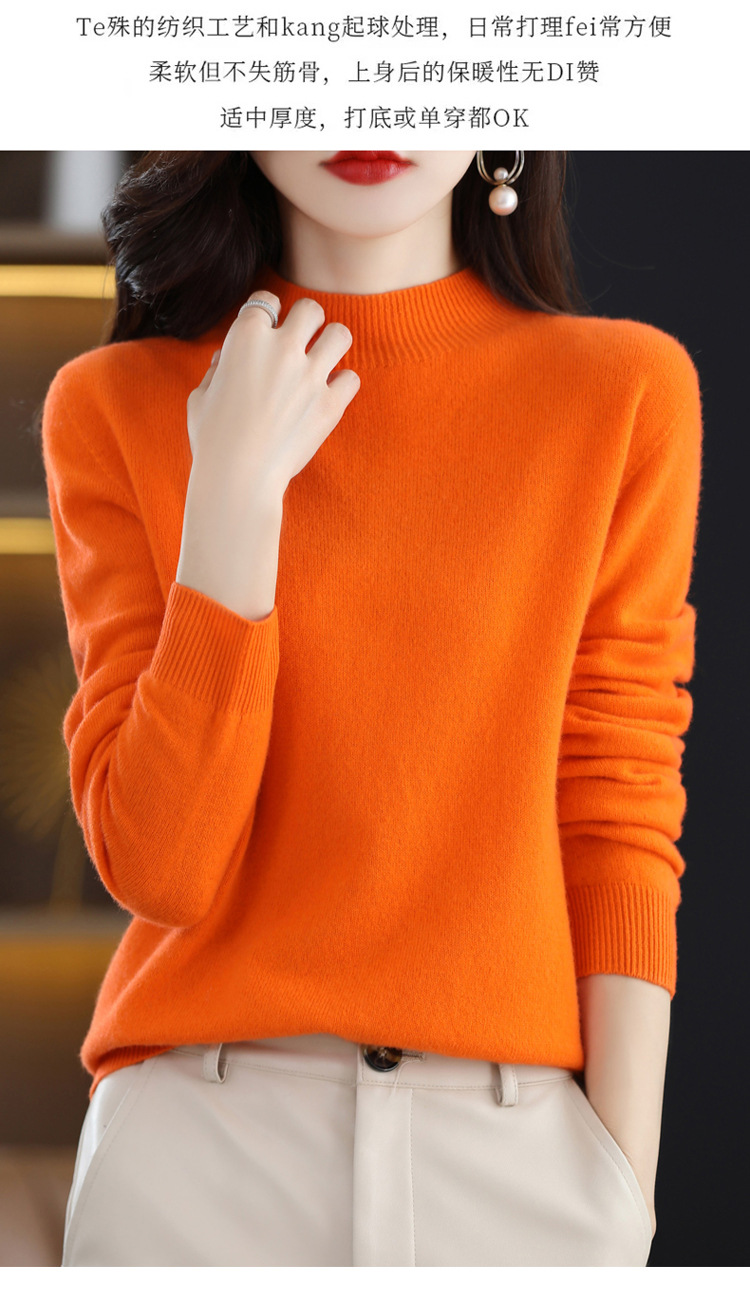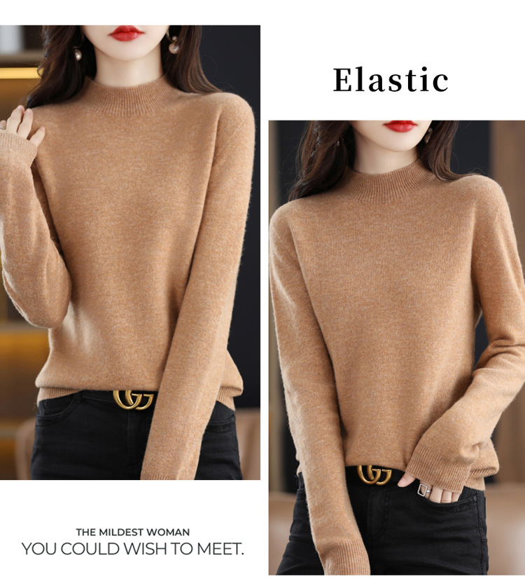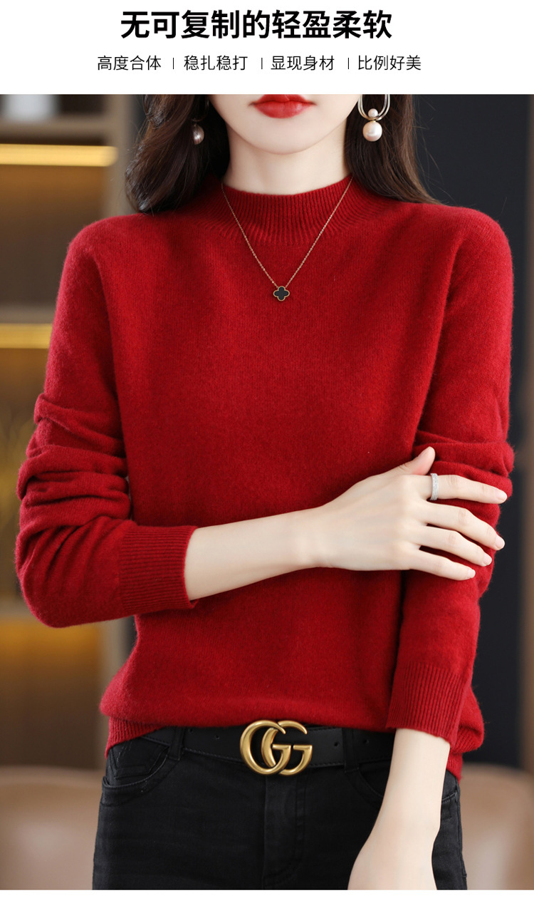 First-line ready-to-wear semi-high-neck wool sweater for women's autumn and winter, simple and versatile cashmere sweater, loose pullover knitted base layer