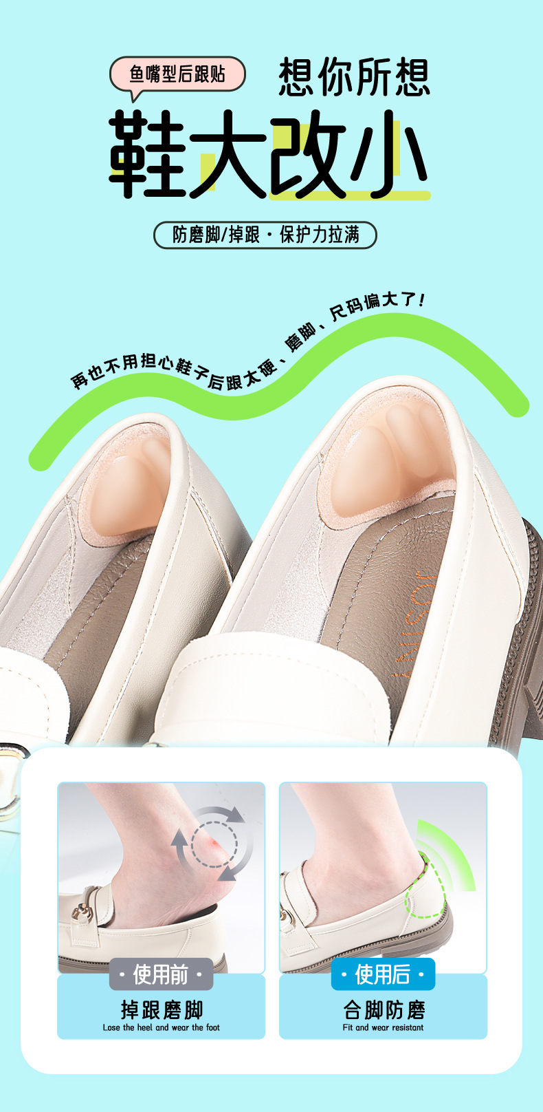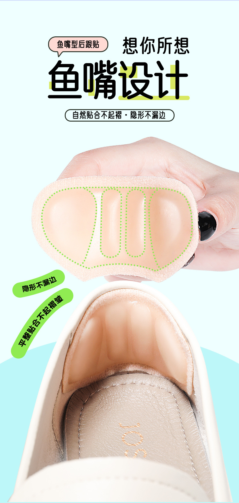 Fish-mouth silicone anti-rubbing foot wonder, backheel patch for women's heels to prevent heel drop, high heels have been greatly modified by half a size pad
