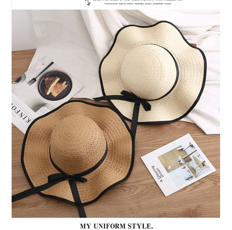 Fisherman's hat, Japanese-style seaside straw hat for women, thin style 2024, trendy wide-brimmed vacation new beach sun hat, straw hat