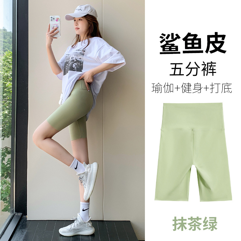 Five-point shark pants, solid color, women's outerwear, summer thin belly cinching Barbie pants, cycling pants, seamless yoga base shorts