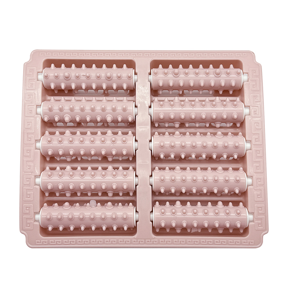 Five-row roller contact foot massager, a home and office equipment with both feet pressed simultaneously for foot massage. Roller type