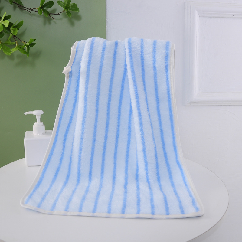 Five sets of coral fleece towels in stock for home use, including facial towels and vertical striped coral fleece towels and bath towels