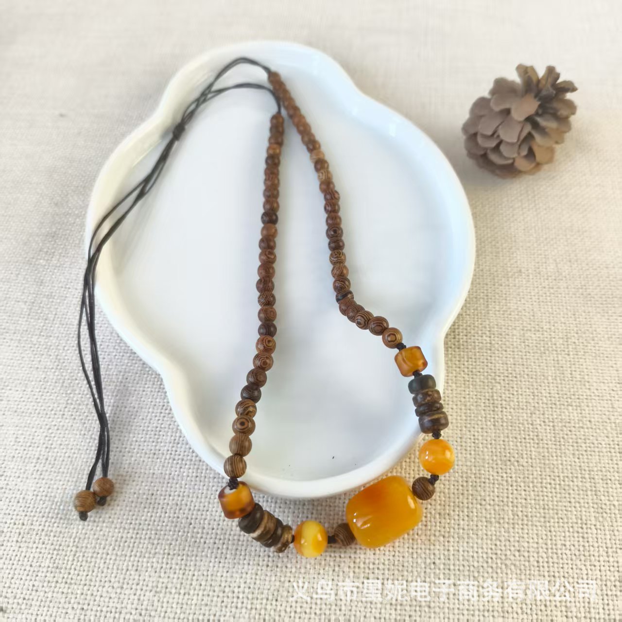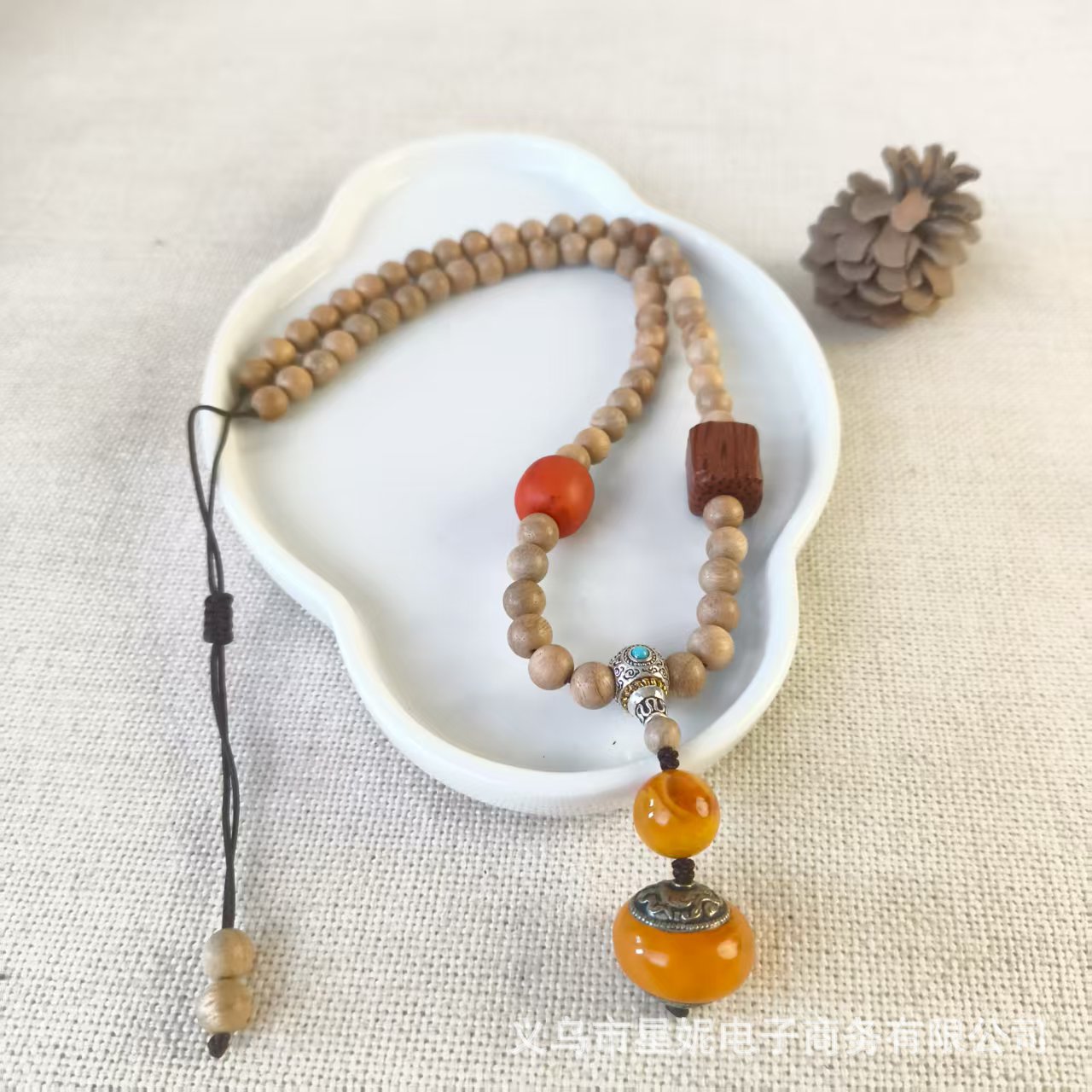 Five styles of crystal incense beads, handcrafted wooden beads and pendants, available in a variety of colors including light brown and dark brown