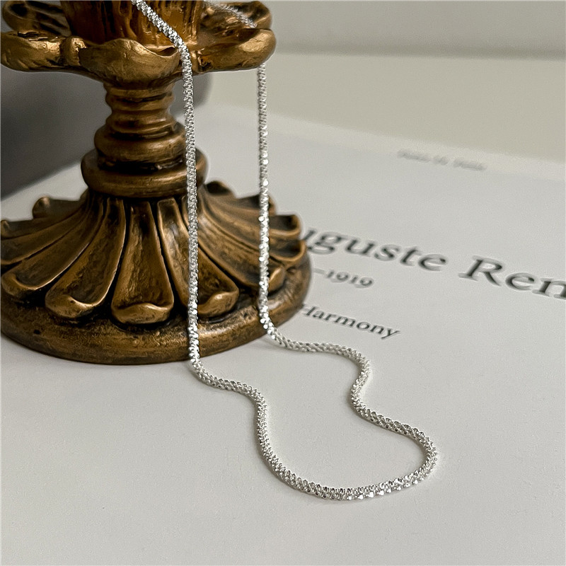 Flash sand Italian niche s925 silver sparkling and glittering collarbone chain plain chain necklace bare chain women's factory supply