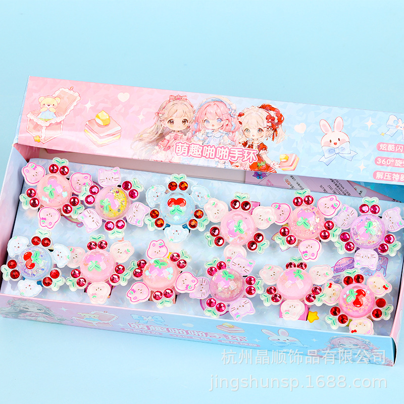 Flashing cherry Rabbit flowing sand Papa Ring with Light, Rotating children's bracelet, kindergarten baby pat ring gift