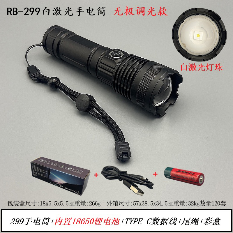 Flashlight with intense light, bright laser cannon, long-lasting charging, outdoor tactical multi-functional mini white laser flashlight