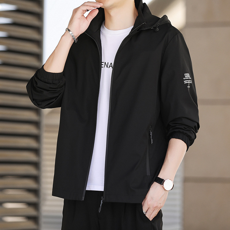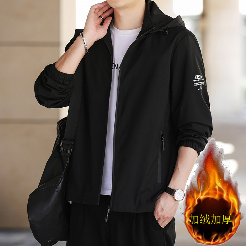 Fleece hooded jacket for men, 2022 autumn and winter casual youth hooded windbreaker for men, workwear stand-up collar men's coat