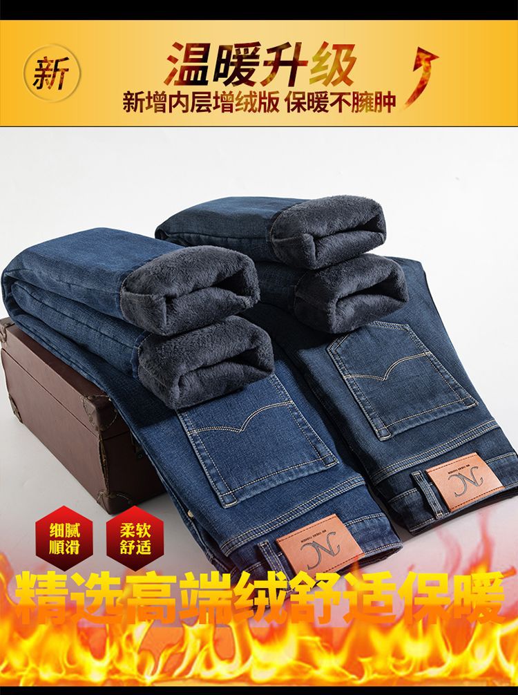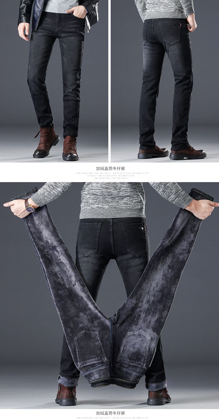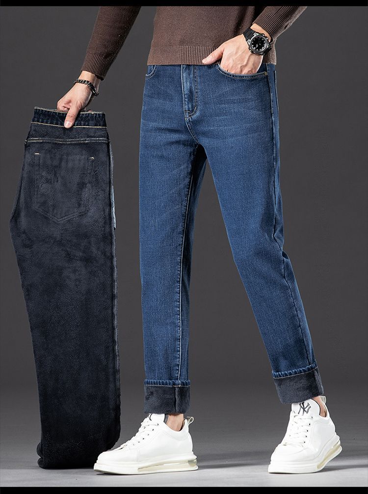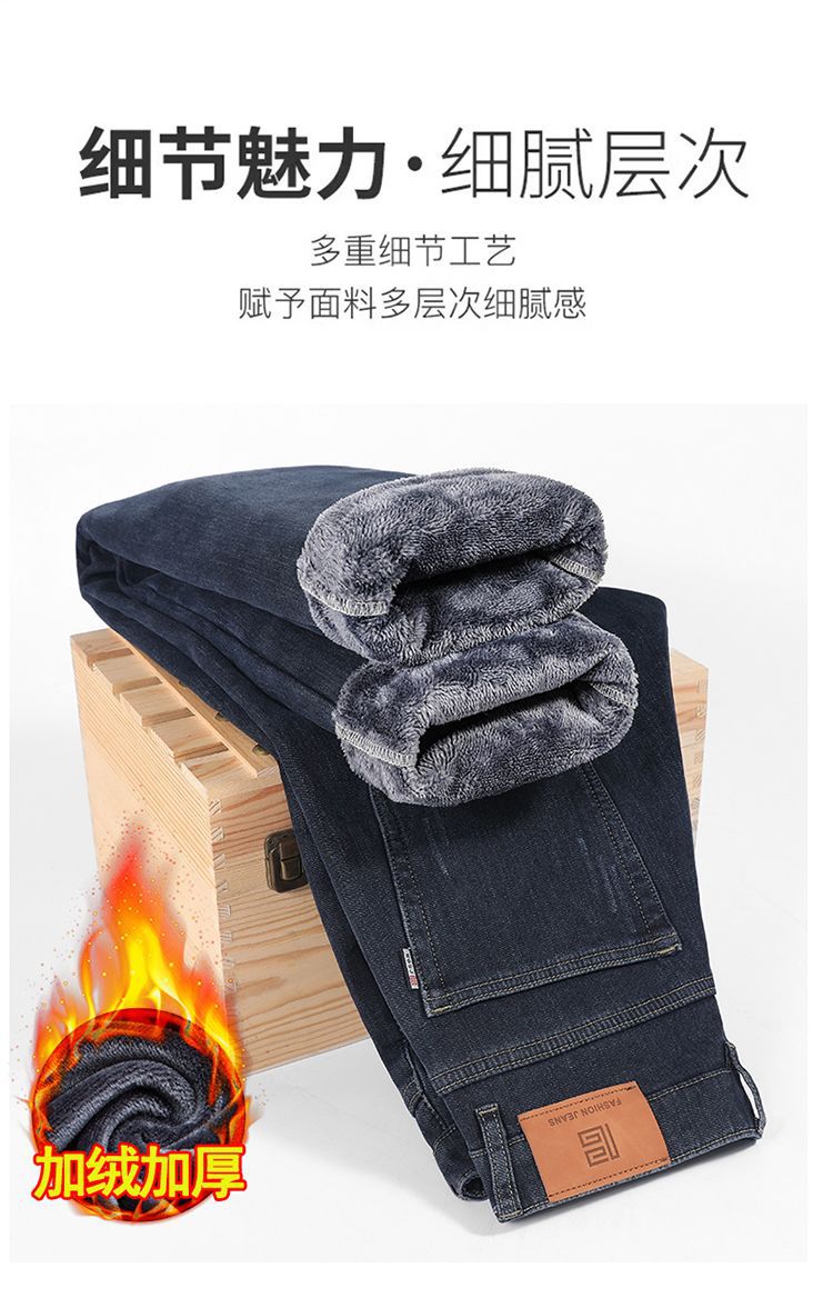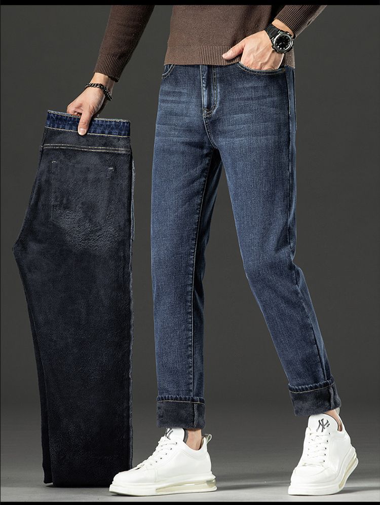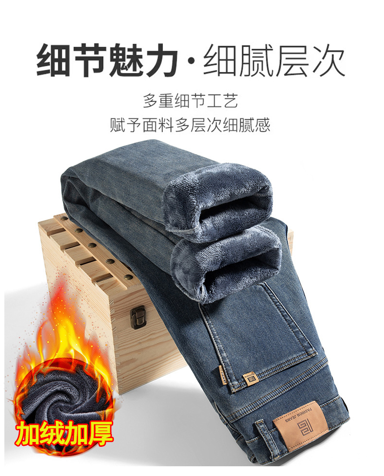 Fleece jeans for men's 2024 autumn/winter collection: Thick, trendy, cotton-elastic, slim, versatile, casual straight long pants details Picture