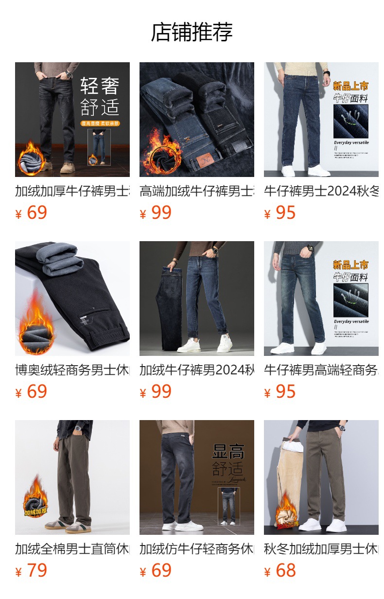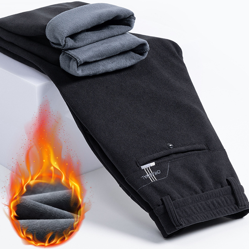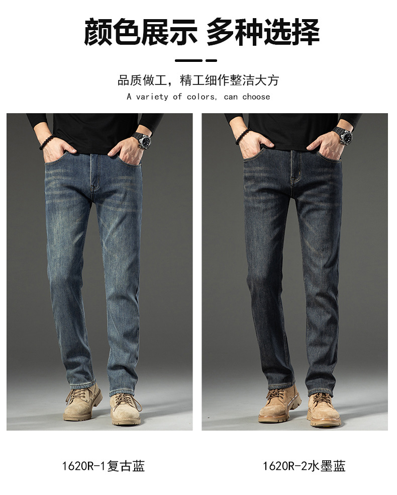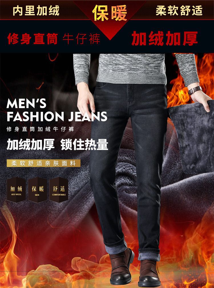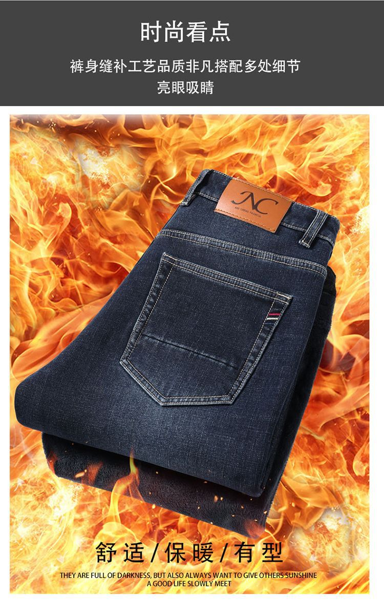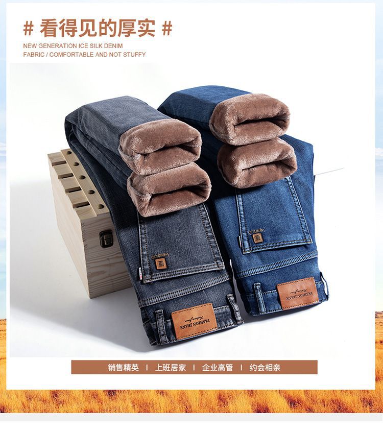 Fleece jeans for men's 2024 autumn/winter collection: Thick, trendy, cotton-elastic, slim, versatile, casual straight long pants details Picture