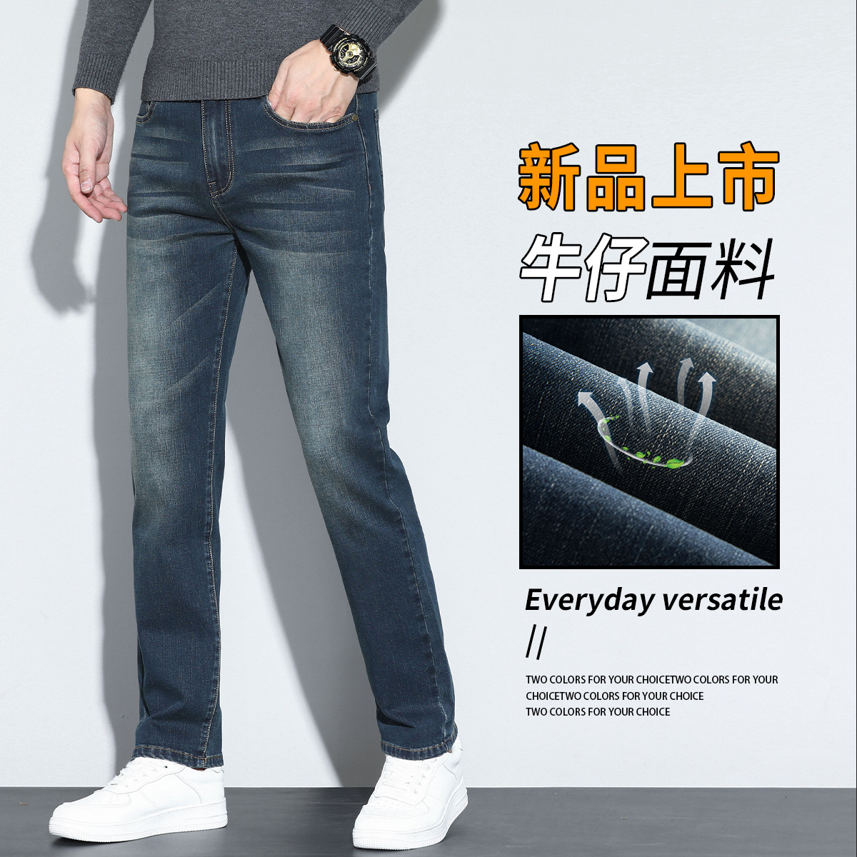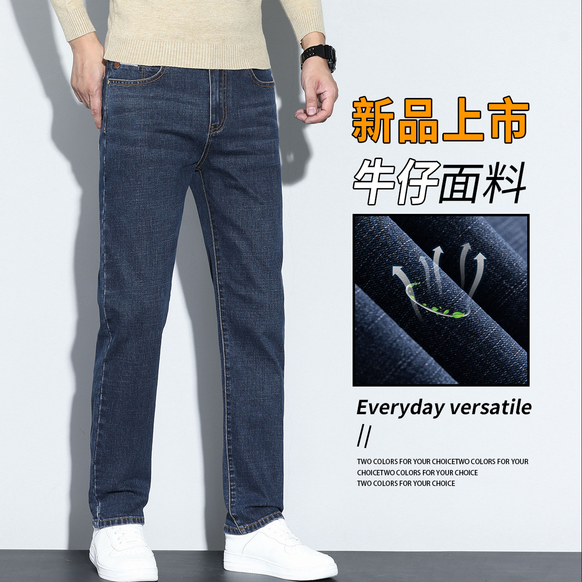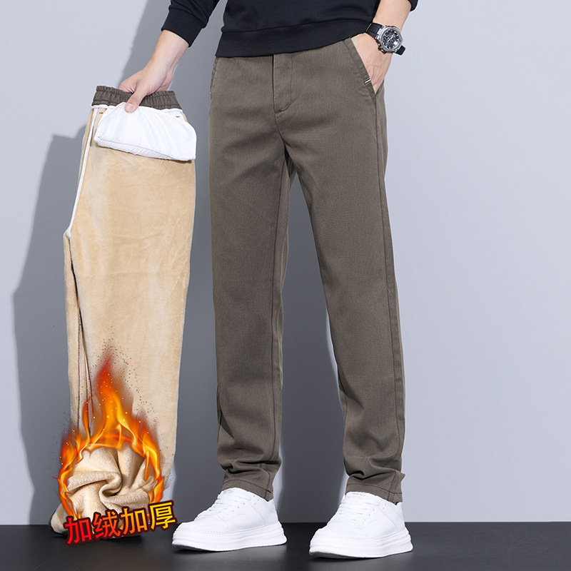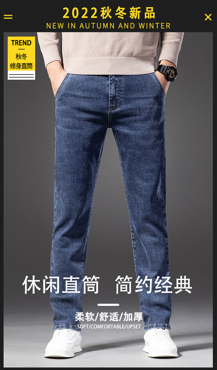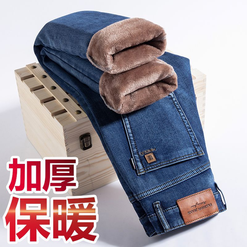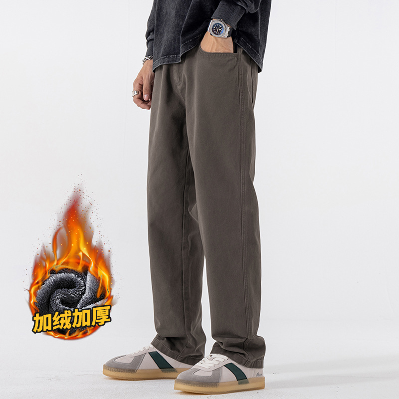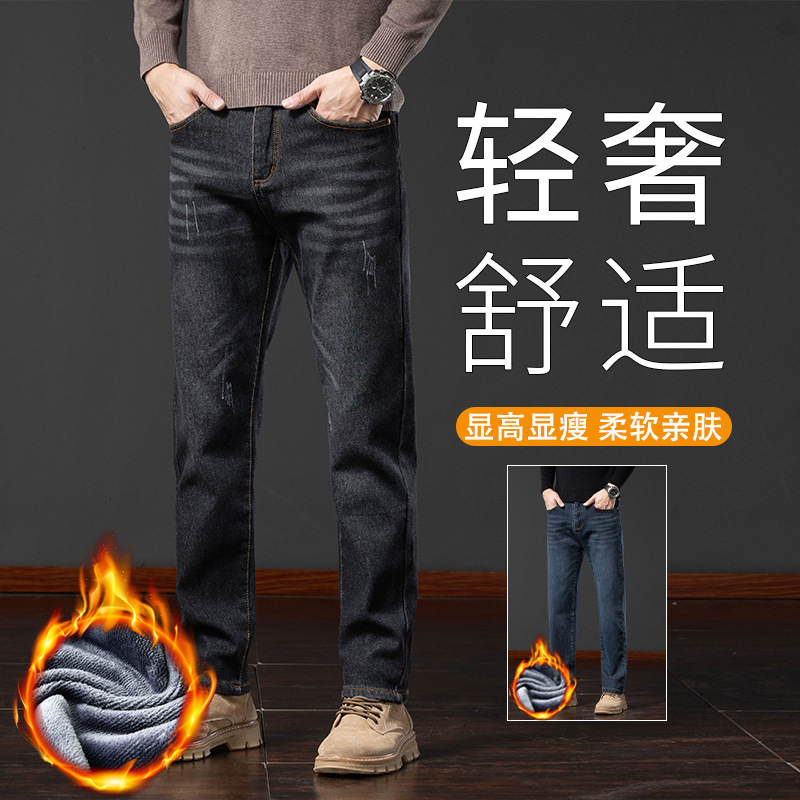 Fleece jeans for men's 2024 autumn/winter collection: Thick, trendy, cotton-elastic, slim, versatile, casual straight long pants Application Scenario
