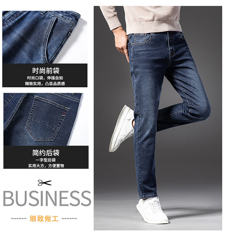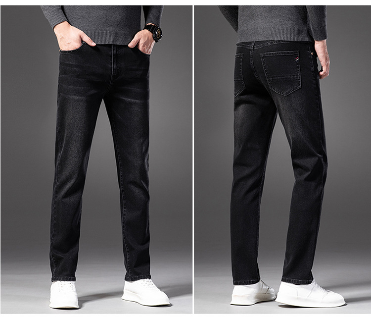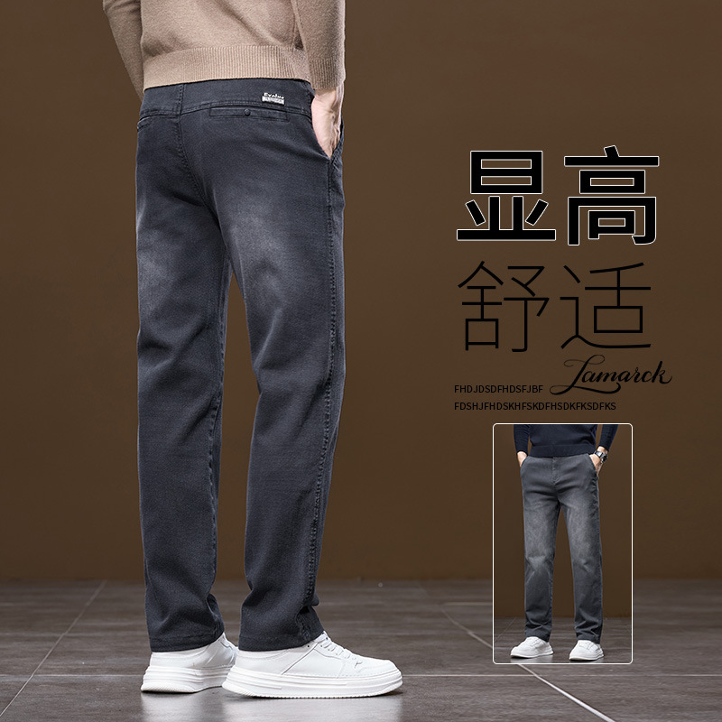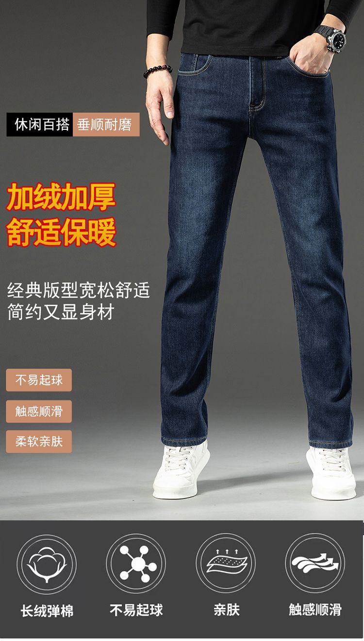 Fleece jeans for men's 2024 autumn/winter collection: Thick, trendy, cotton-elastic, slim, versatile, casual straight long pants Specification image