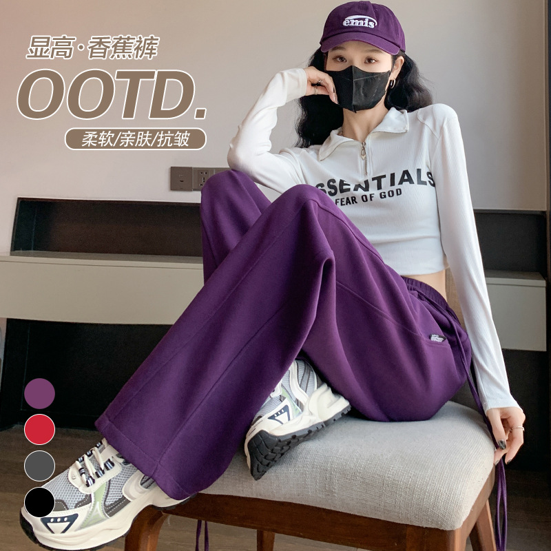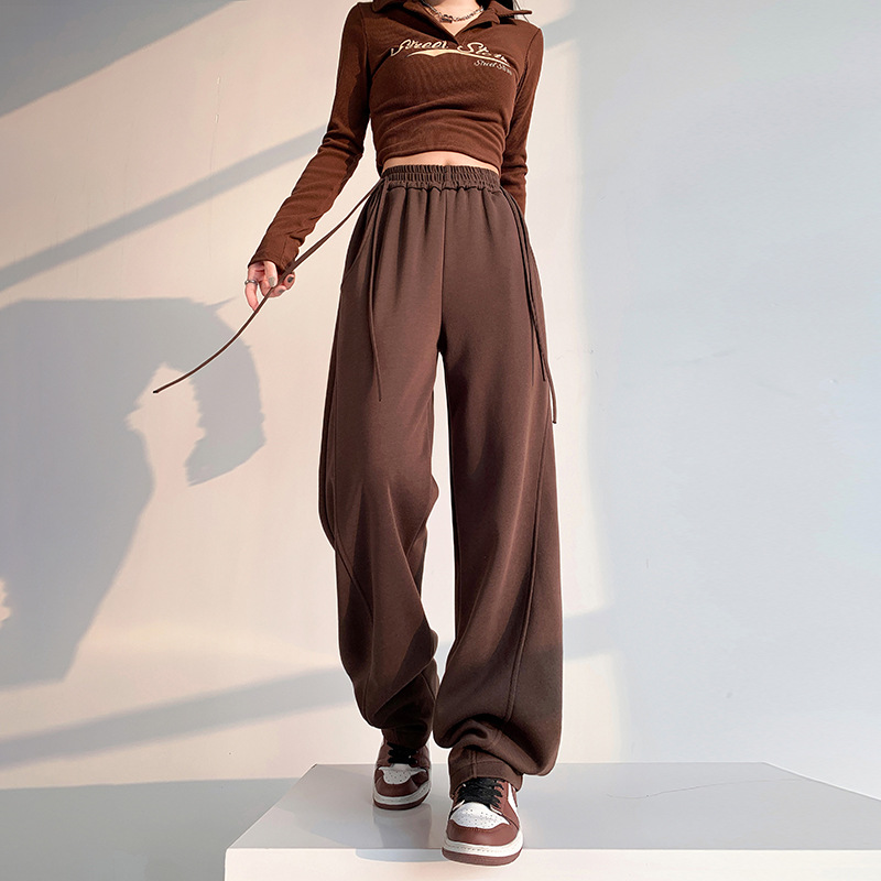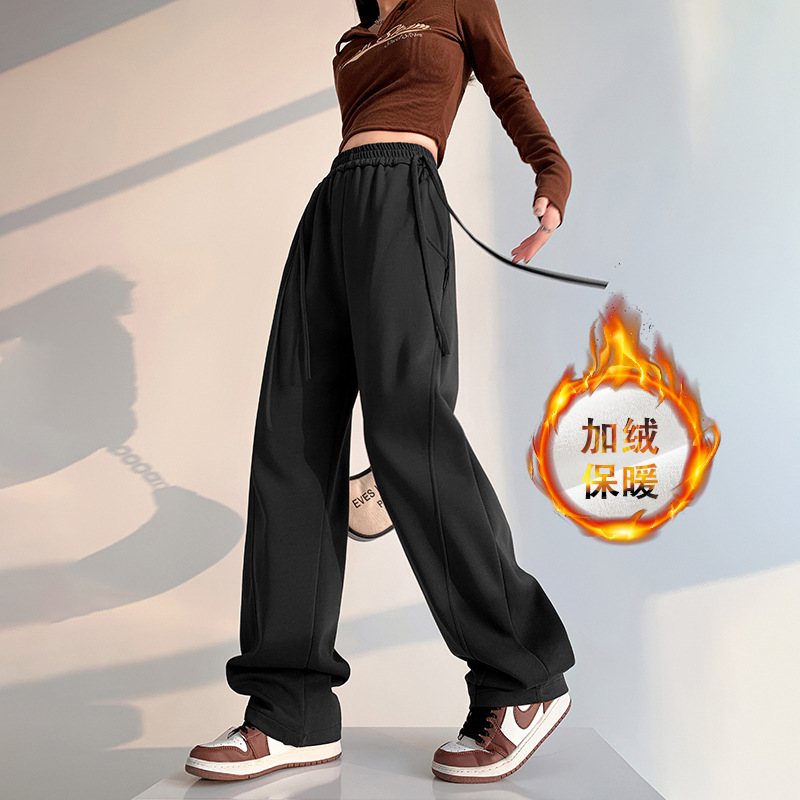 Fleece warm wide-leg pants, loose and high-waisted, slimming winter new style
