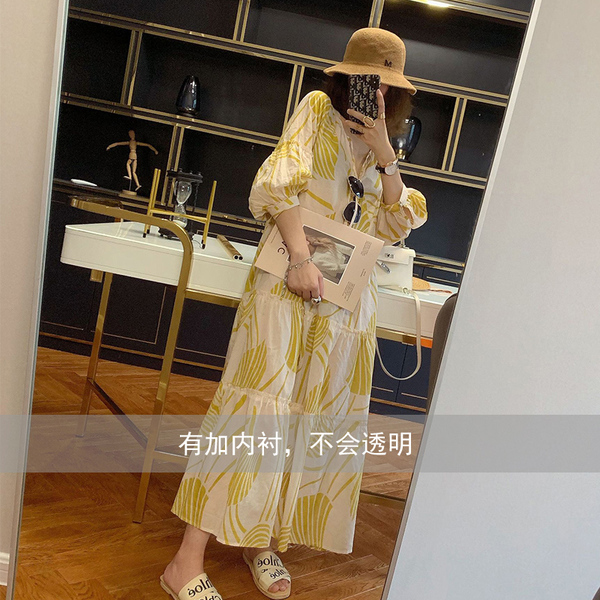 Floral print dress, V-neck dress, feminine and stylish, French retro long dress, vacation beach dress