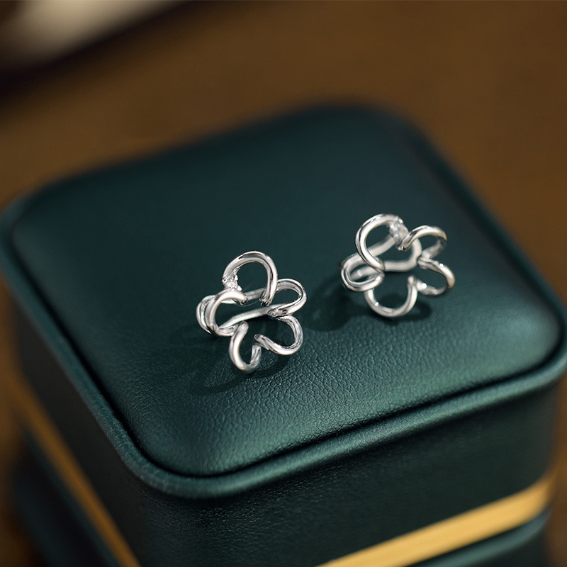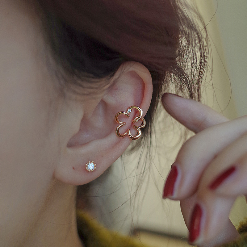 Flower-shaped ear clips for women, 2024 new high-end and light luxury earrings, niche design summer earrings