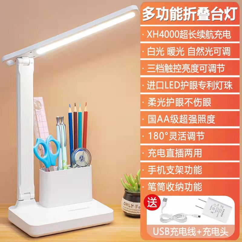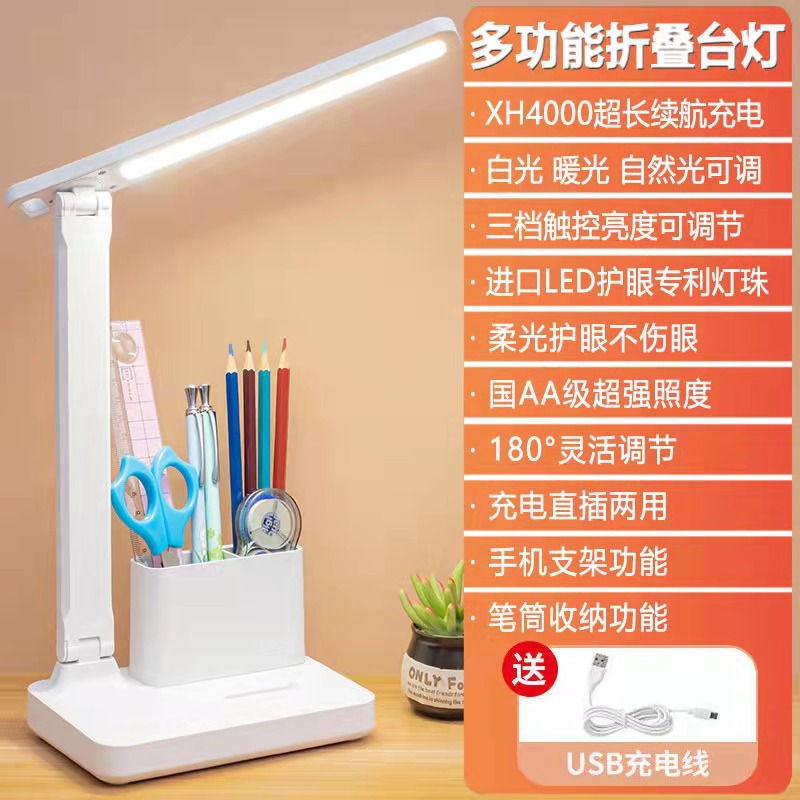 Folding desk lamp, led touch charging dual-purpose desk lamp, eye-protecting, learning, children, college student dormitory night reading bedside lamp