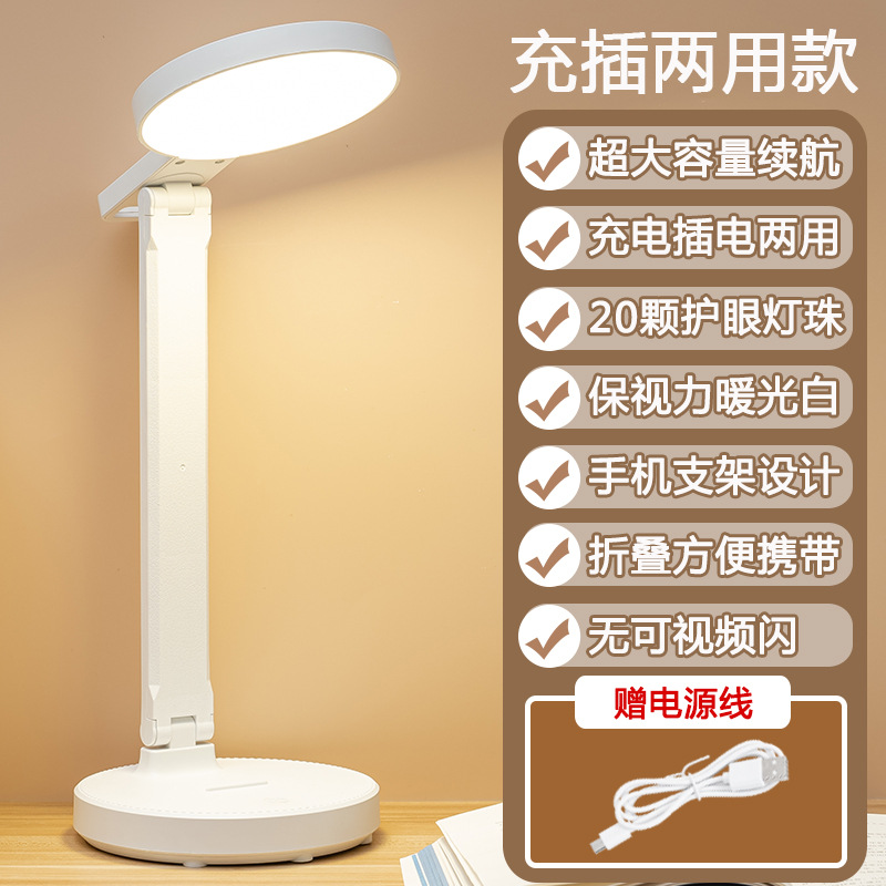 Folding eye-protecting led desk lamp, student dormitory dual-purpose charger and plug, study, children's bedroom bedside gift desk lamp