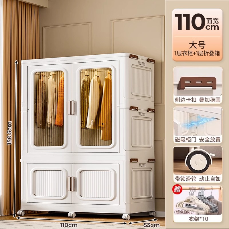 Folding storage cabinet, children's wardrobe, bedroom home, multi-layer enlarged, baby and infant clothes with cabinet door storage cabinet