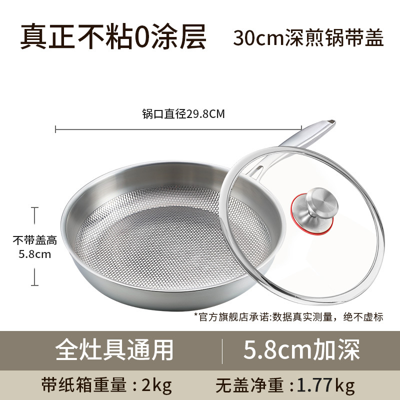 【30cm】 Pure steel without coating, non-stick and anti-convex (for 3-5 people) with cover