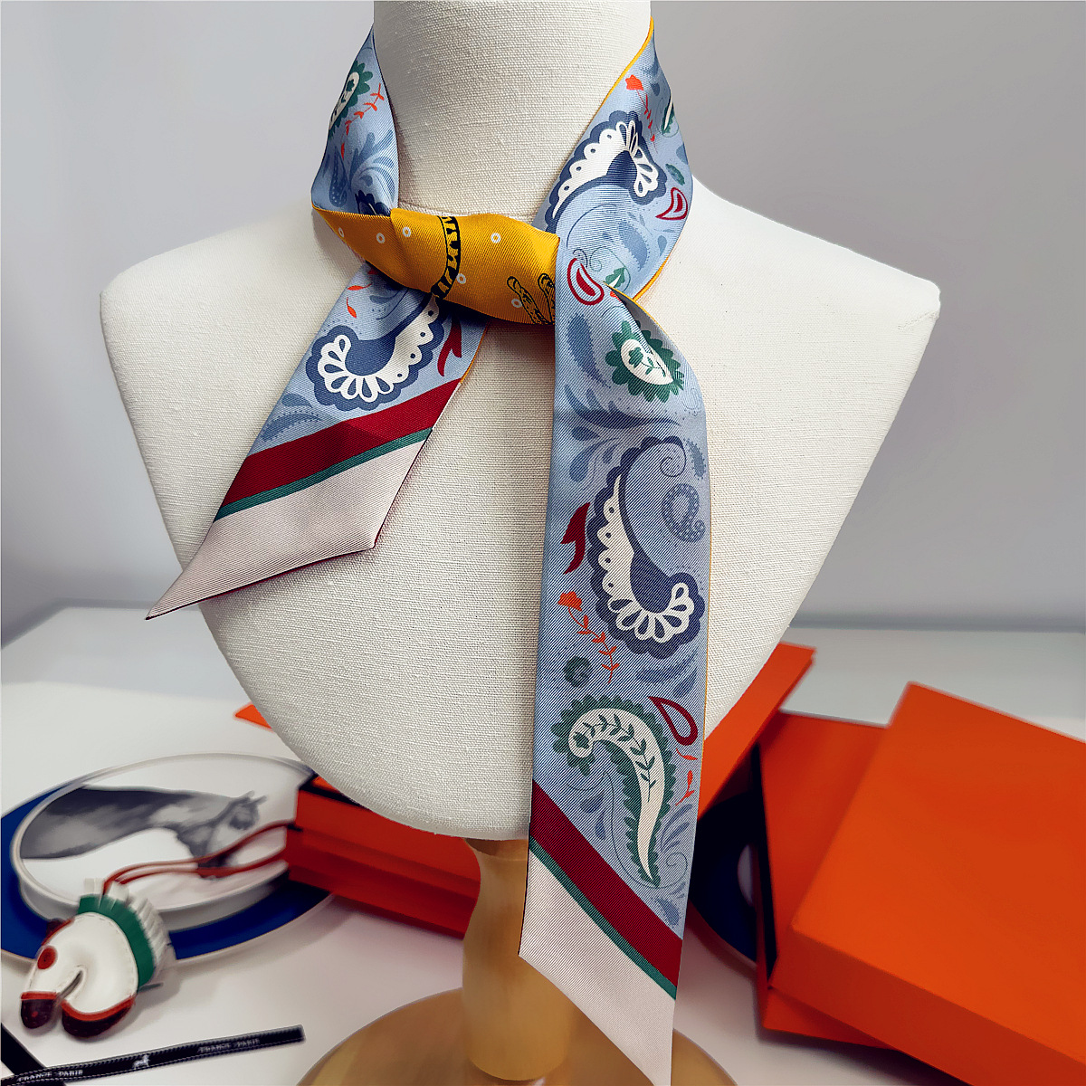 For the 2024 autumn and winter season, we will launch a new collection of narrow and long scarves, high-quality 18mm silk twill silk wrapped bag straps, wrist straps and hair bands