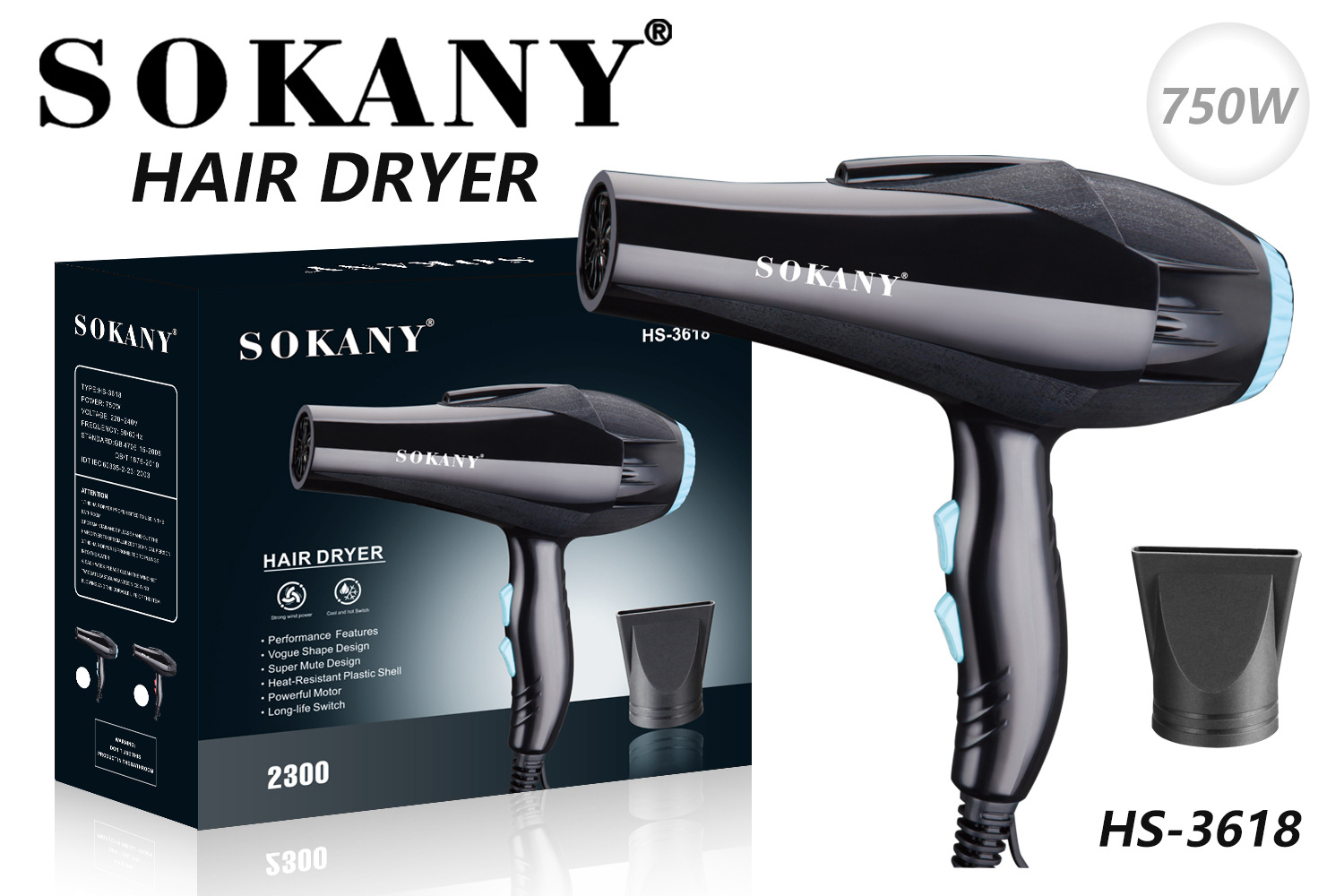 Foreign trade SOKANY 3618 Hair Dryer Household multi-functional Electric Hair dryer SOKANY Hair Dryer
